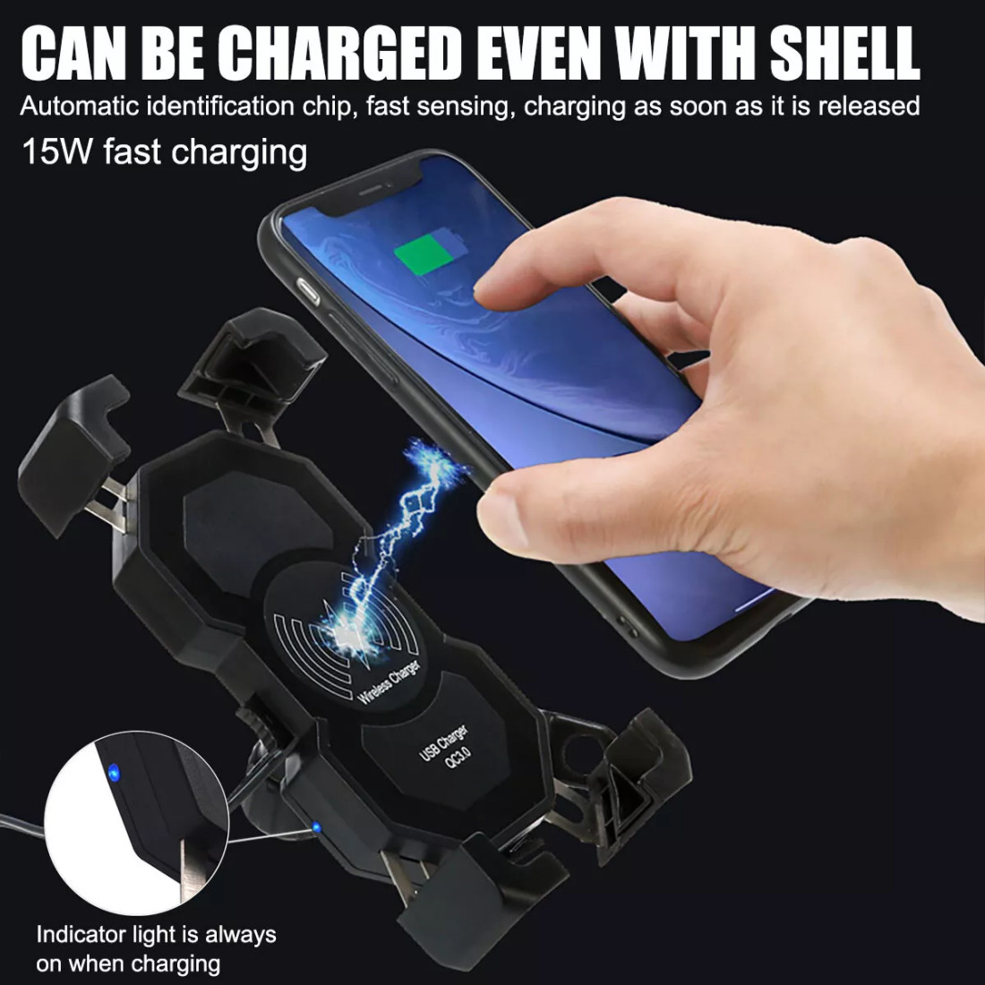 15W Phone Holder Wireless Charger USB Charging Mount for Motorcycle Handlebar A