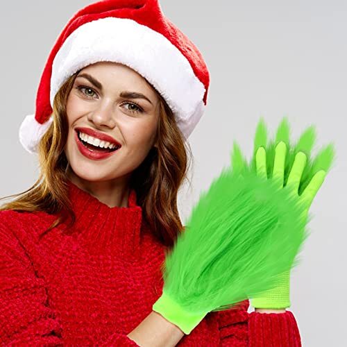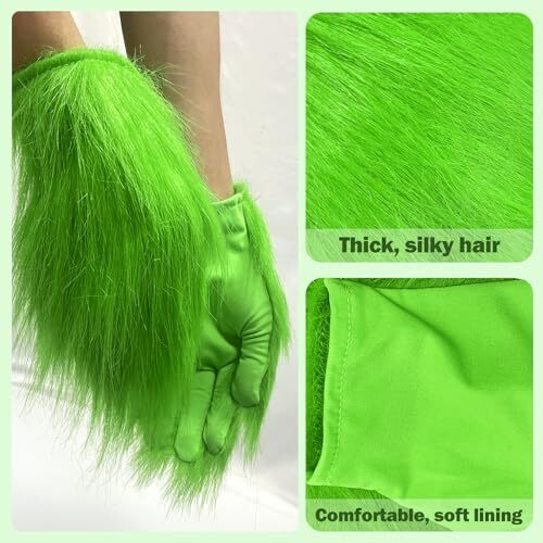 Green Furry Hand Gloves Green Monster Furry Gloves for Halloween Christmas