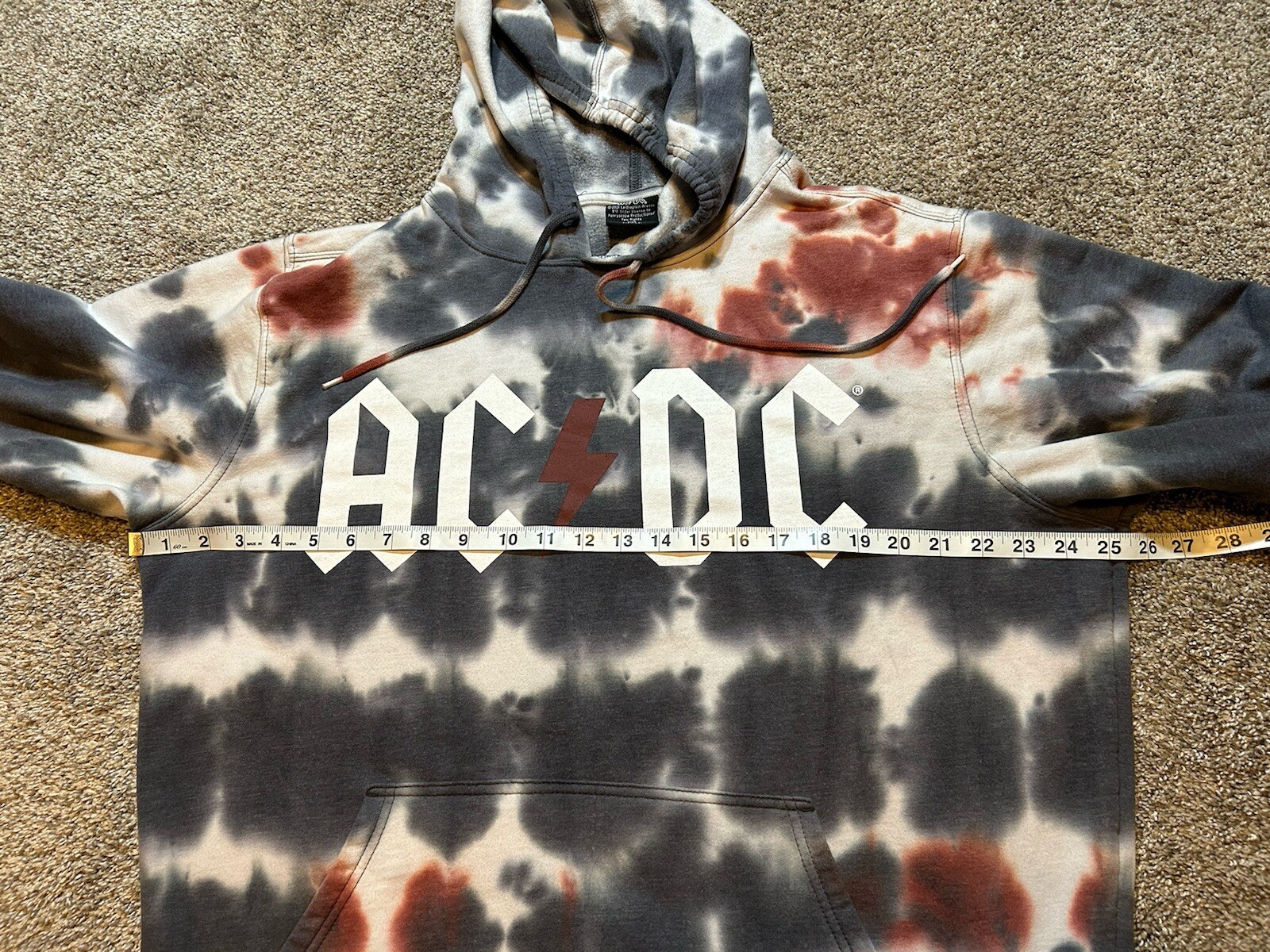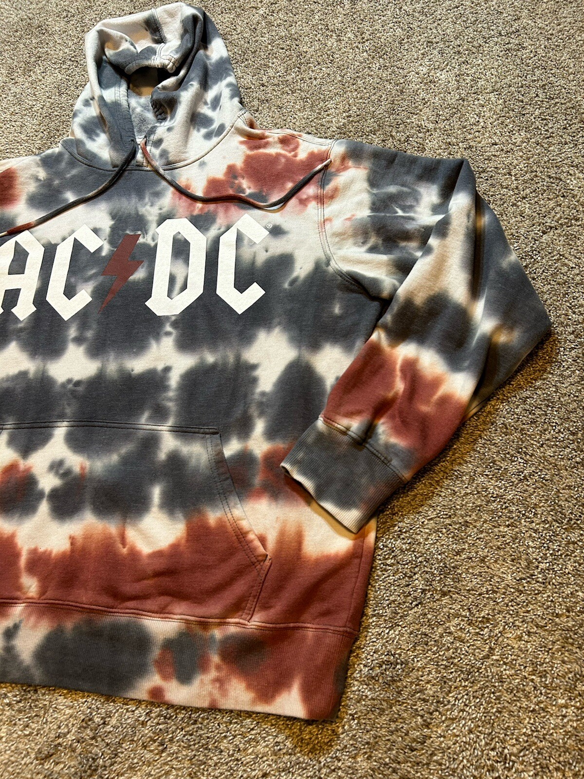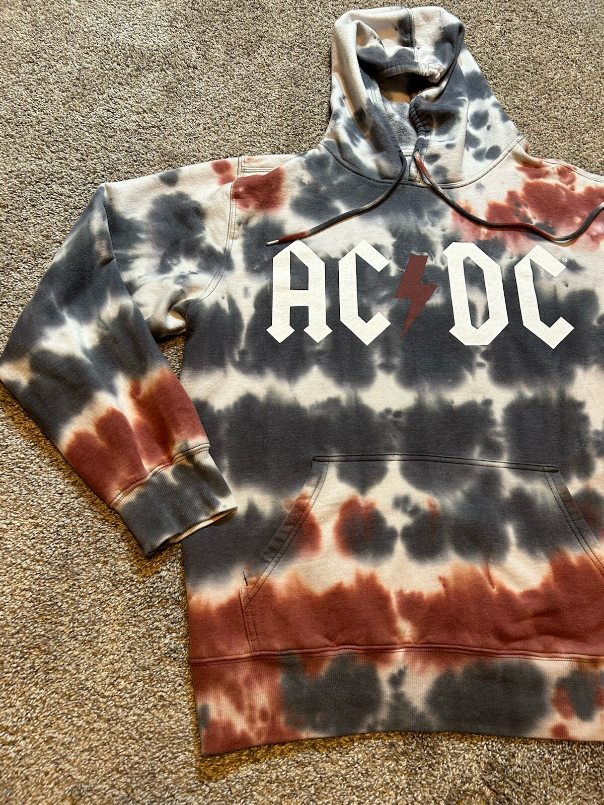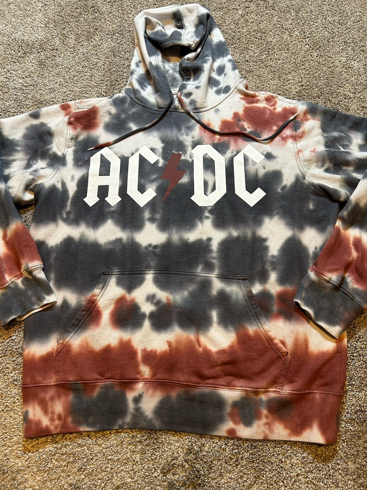 AC/DC Sweatshirt Mens Large 42/44 Tie Dye Band Music Rock Hooded Pullover 2021