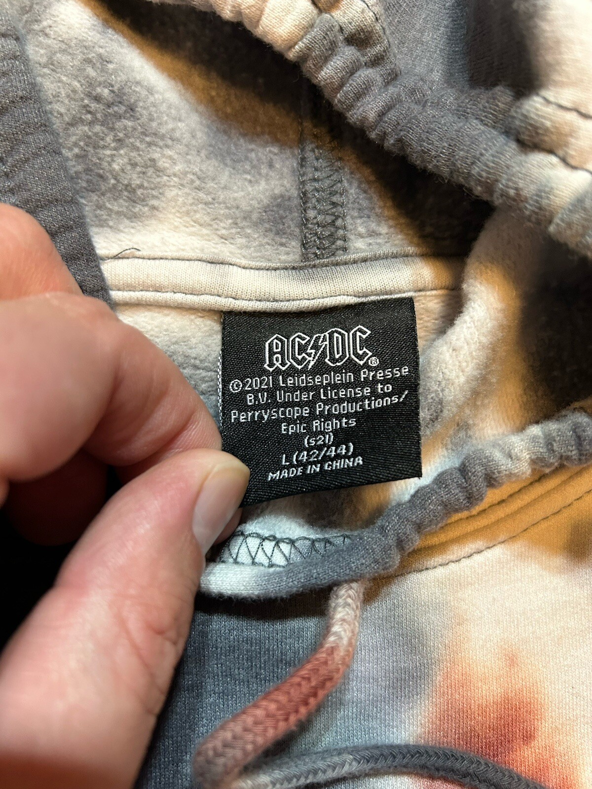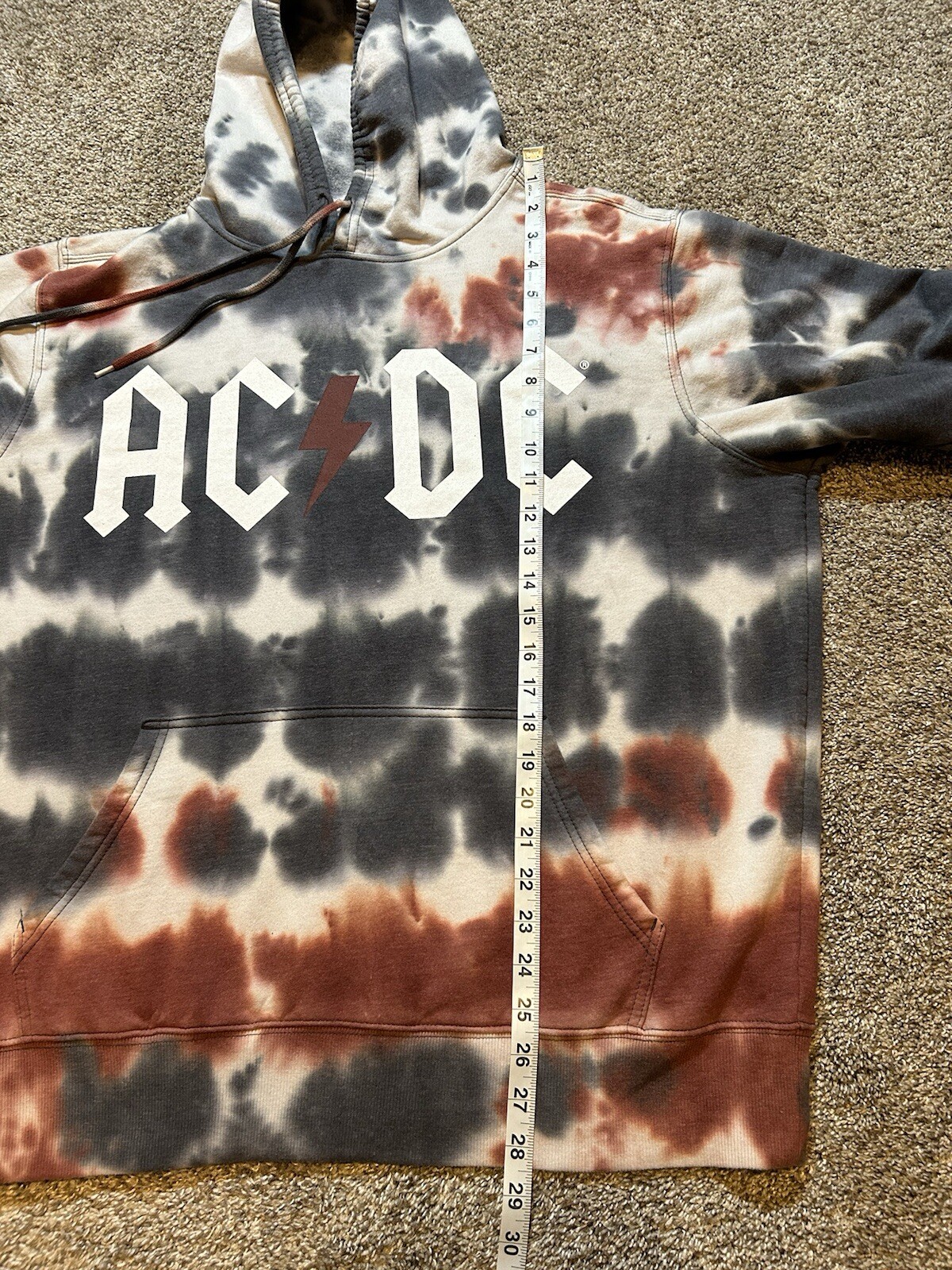 как выглядит AC/DC Sweatshirt Mens Large 42/44 Tie Dye Band Music Rock Hooded Pullover 2021 фото
