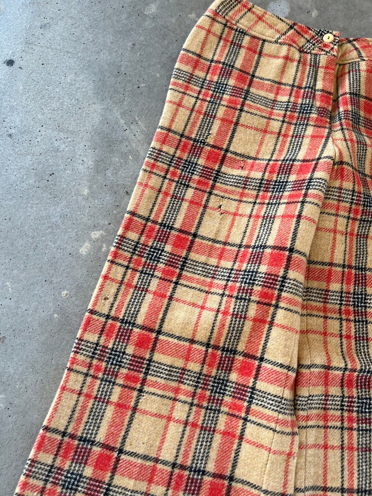Vintage 1970s Wool Flared Plaid Pants Trousers