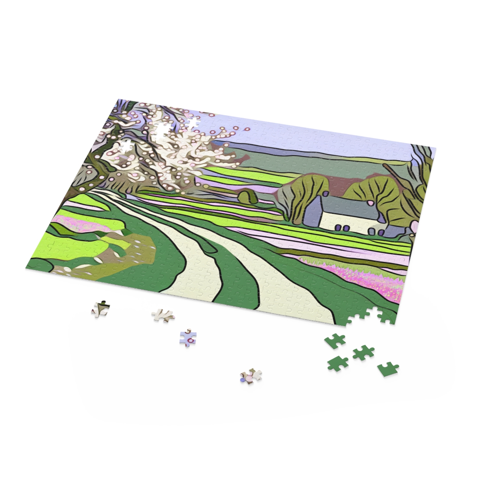 Puzzle 120, 252, 500-Piece Vintage Style Country Road Illustration