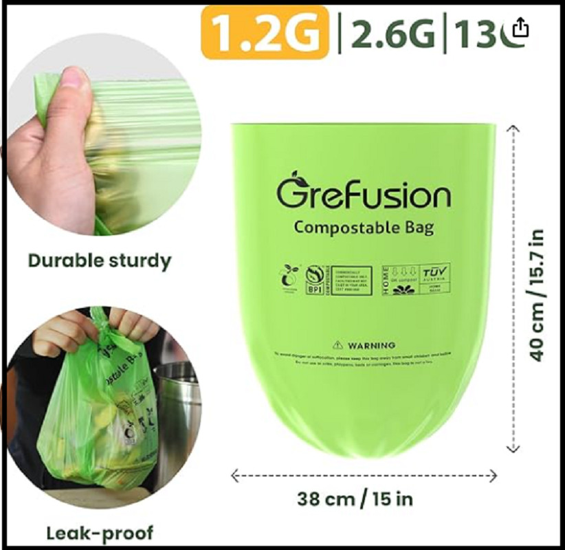 как выглядит GreFusion Compostable Bags for Kitchen Compost Bin 1.2 Gallon,125 Count,Compost фото