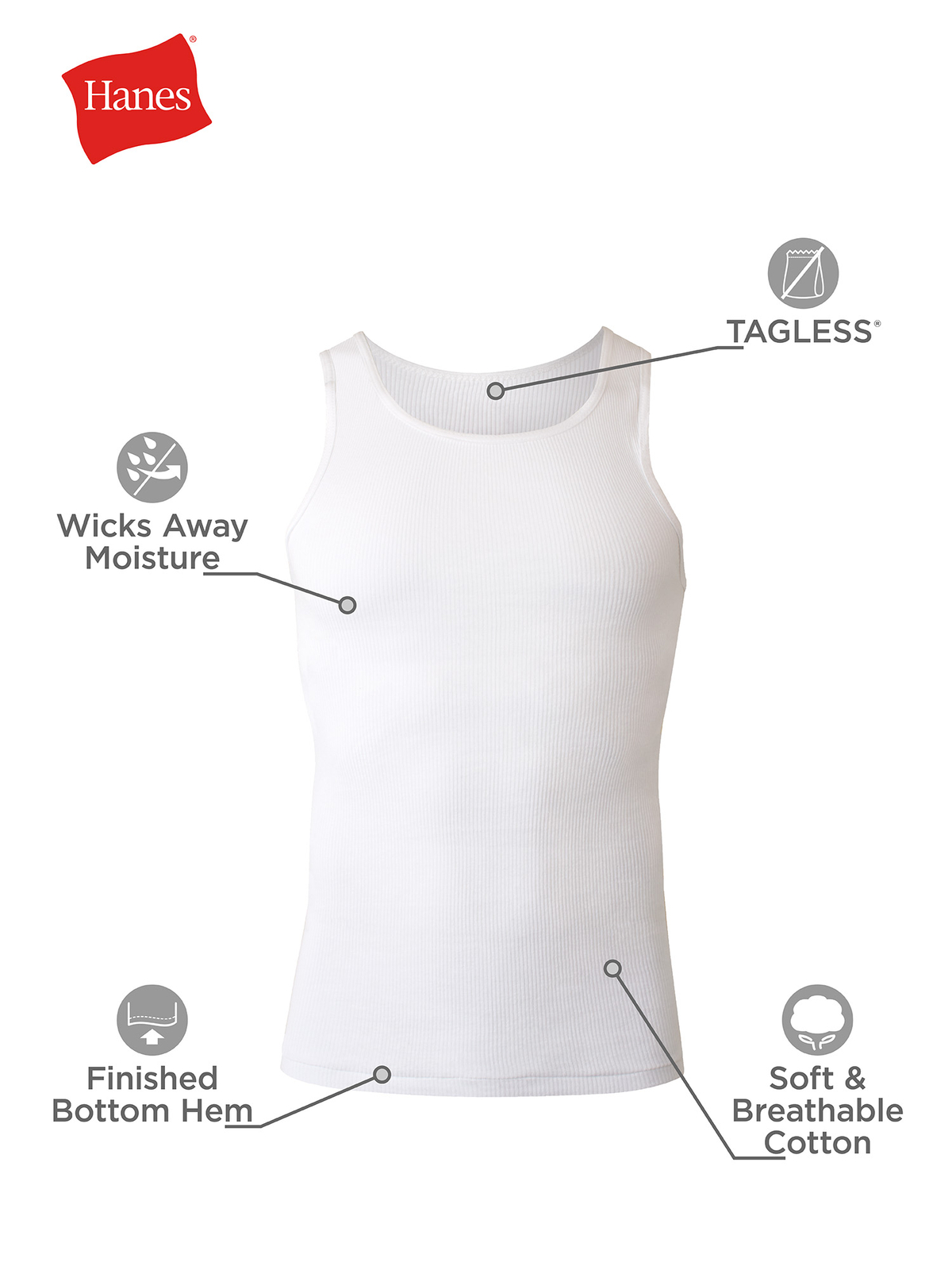 Hanes Tank Undershirt 10-Pack ComfortSoft Value Tag Itch Free Ribbed White S-3XL