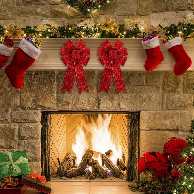 2 Pcs Christmas Bows for Wreaths, Christmas Wreath Bows, Red Glitter