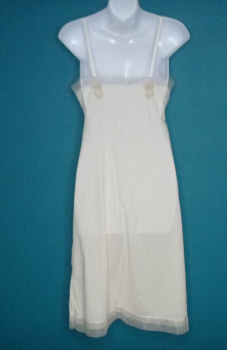 Vtg 50s 60s Van Raalte Suavette Full Slip Nylon Chiffon Lace Off White Sz 32
