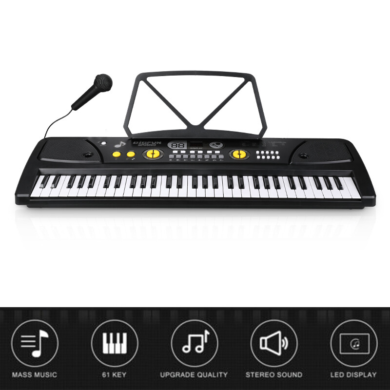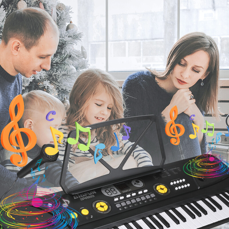 61 Key Electronic Keyboard Piano w/ Music Stand Micphones, Set for Beginners