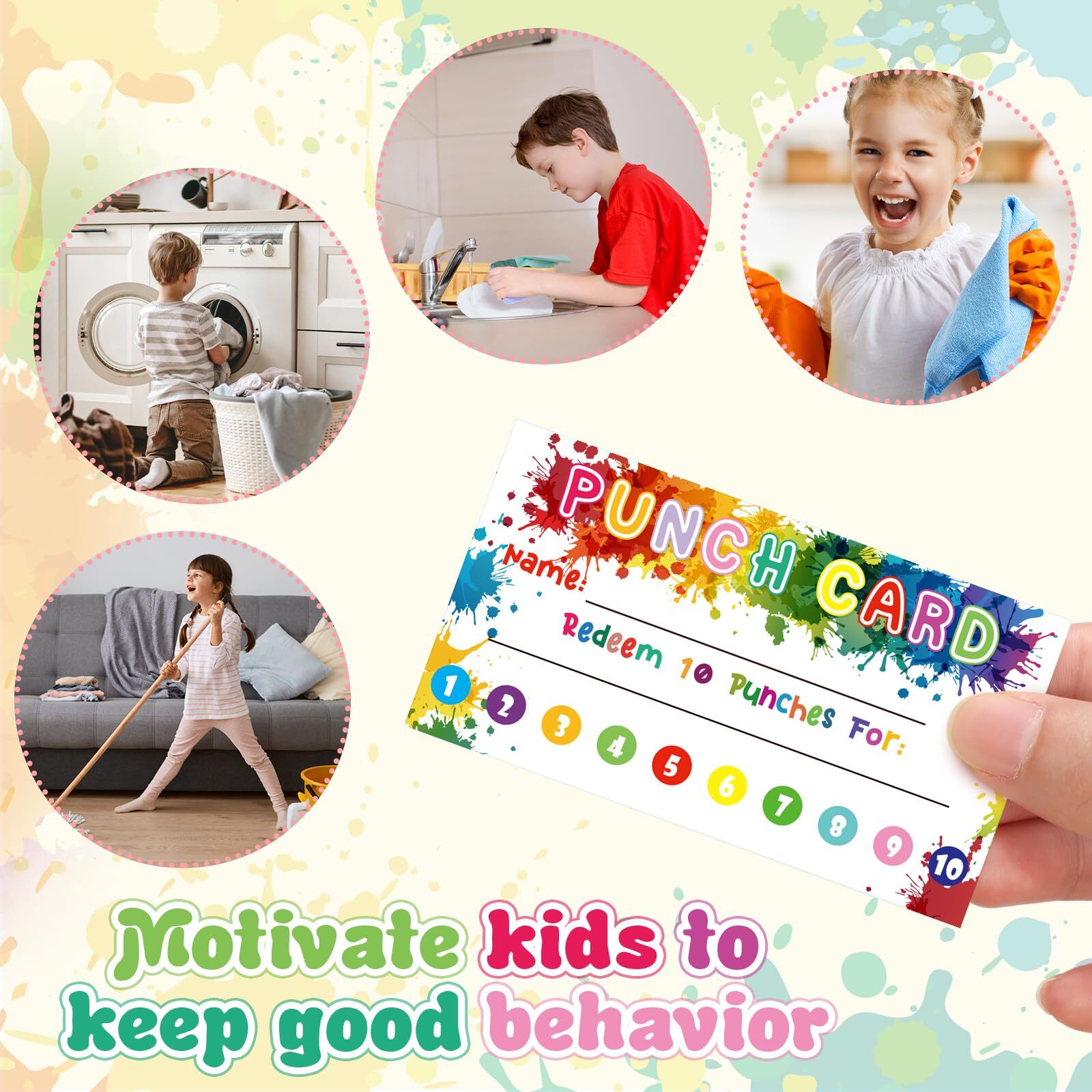 как выглядит 200 Pcs Punch Cards with Hole Puncher 8 Styles Loyalty Reward Card for School фото
