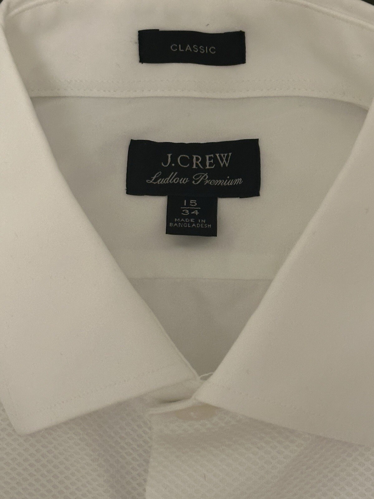 J.Crew Size 15/35 Men s Ludlow Premium Classic Tuxedo Cotton Dress Shirt White