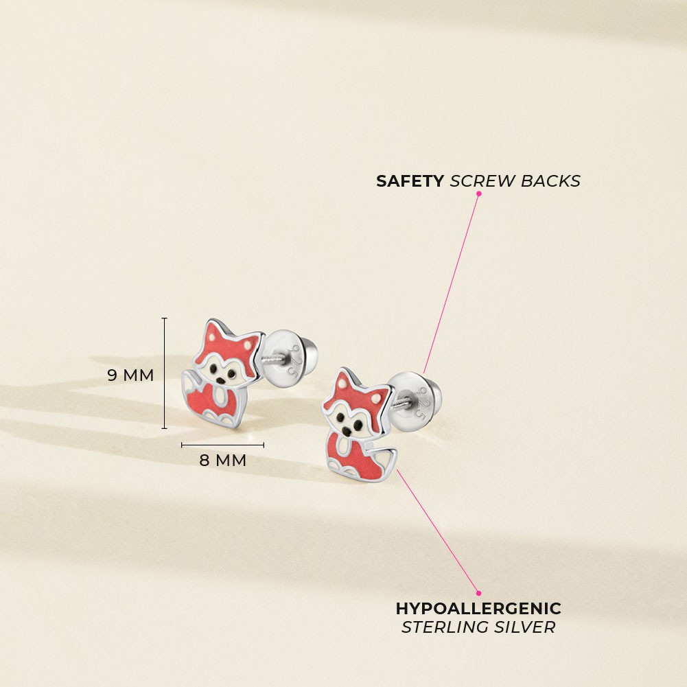 Little Fox Kids / Childrens / Girls Earrings Screw Back Enamel - Sterling Silver