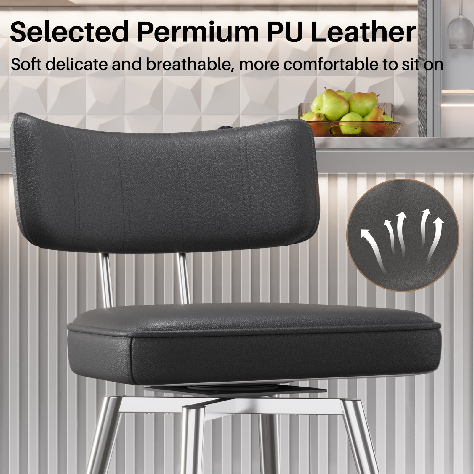 как выглядит Set of 2 Counter Height Stools Swivel Dining Chairs for Kitchen Island 26