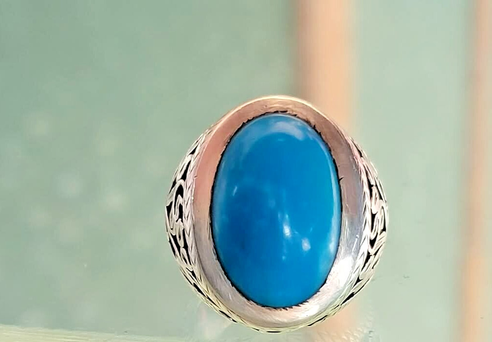 Natural Nishapur Turquoise Ring Blue Feroza Hand made Classical Ring Men's wear