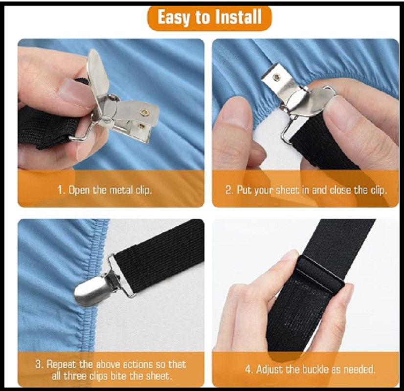 8 Pack Bed Sheet Straps Adjustable Fitted Sheet Straps Clips Heavy Duty Bed Shee