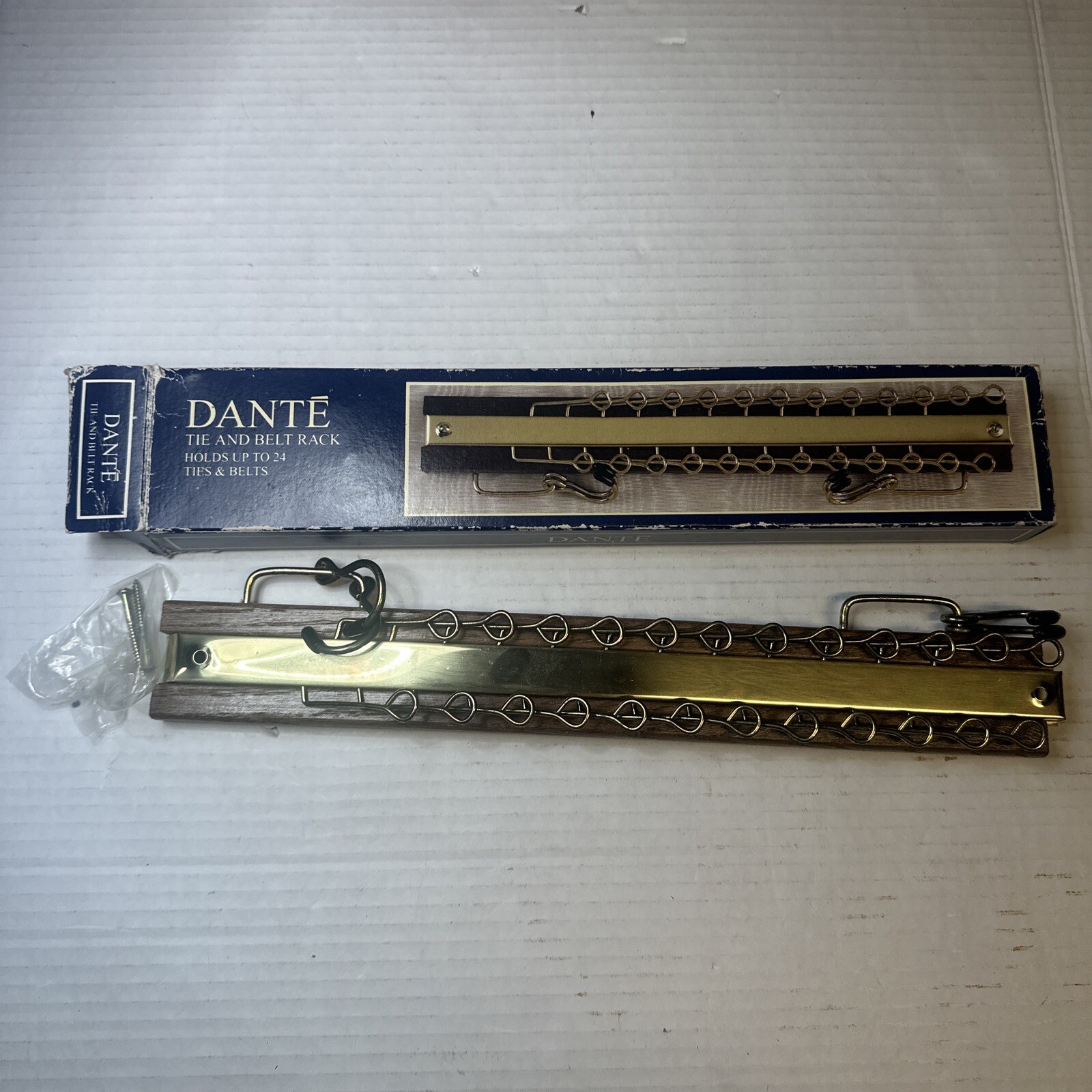 Vintage Dante American 24 Hook Tie Rack Hanger Closet Mid Century Walnut Brass