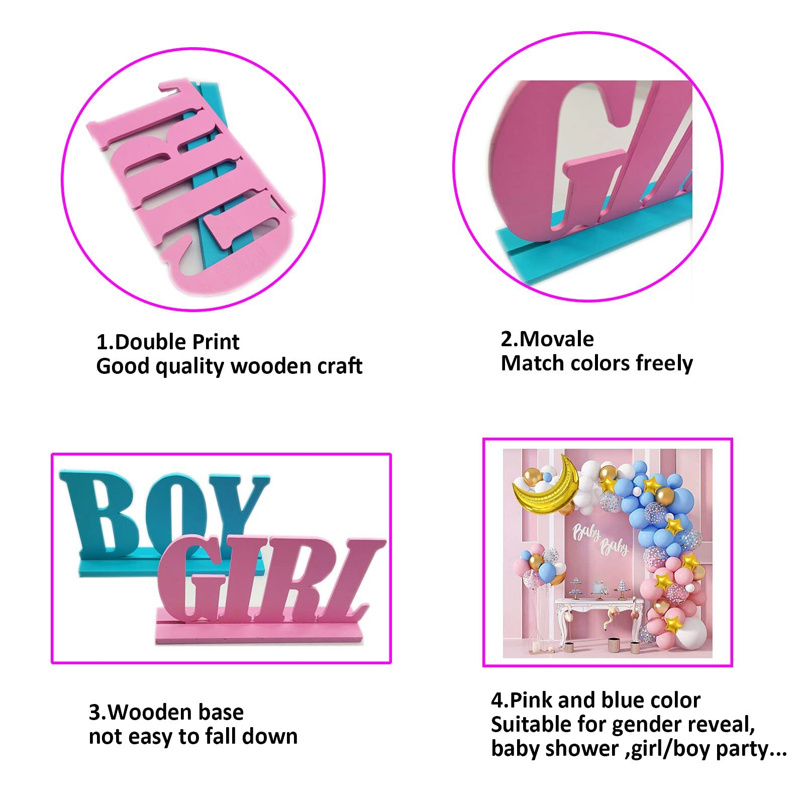 Gender Reveal Decor 2 Wooden Signs Blue Pink Table Centerpiece Baby Shower