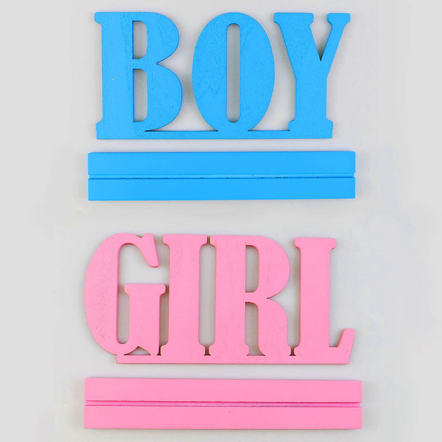 как выглядит Gender Reveal Decor 2 Wooden Signs Blue Pink Table Centerpiece Baby Shower фото