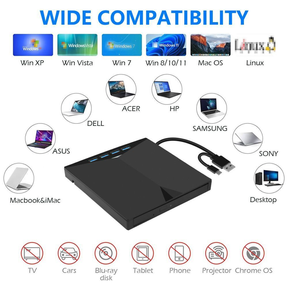 USB 3.0 External CD DVD Writer Drive Burner Reader Player for Windows 7/8/10/11