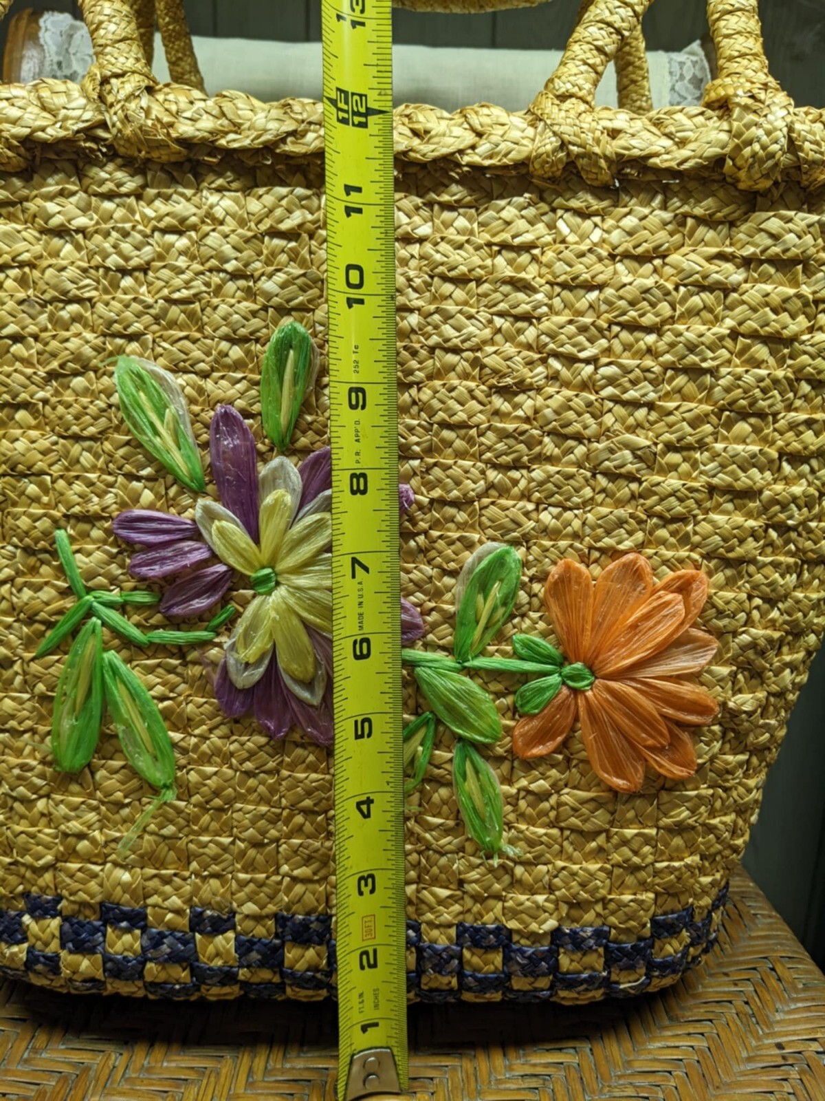 Vintage Straw Woven Floral Embroidered Beach Bag Tote Boho Basket Handbag