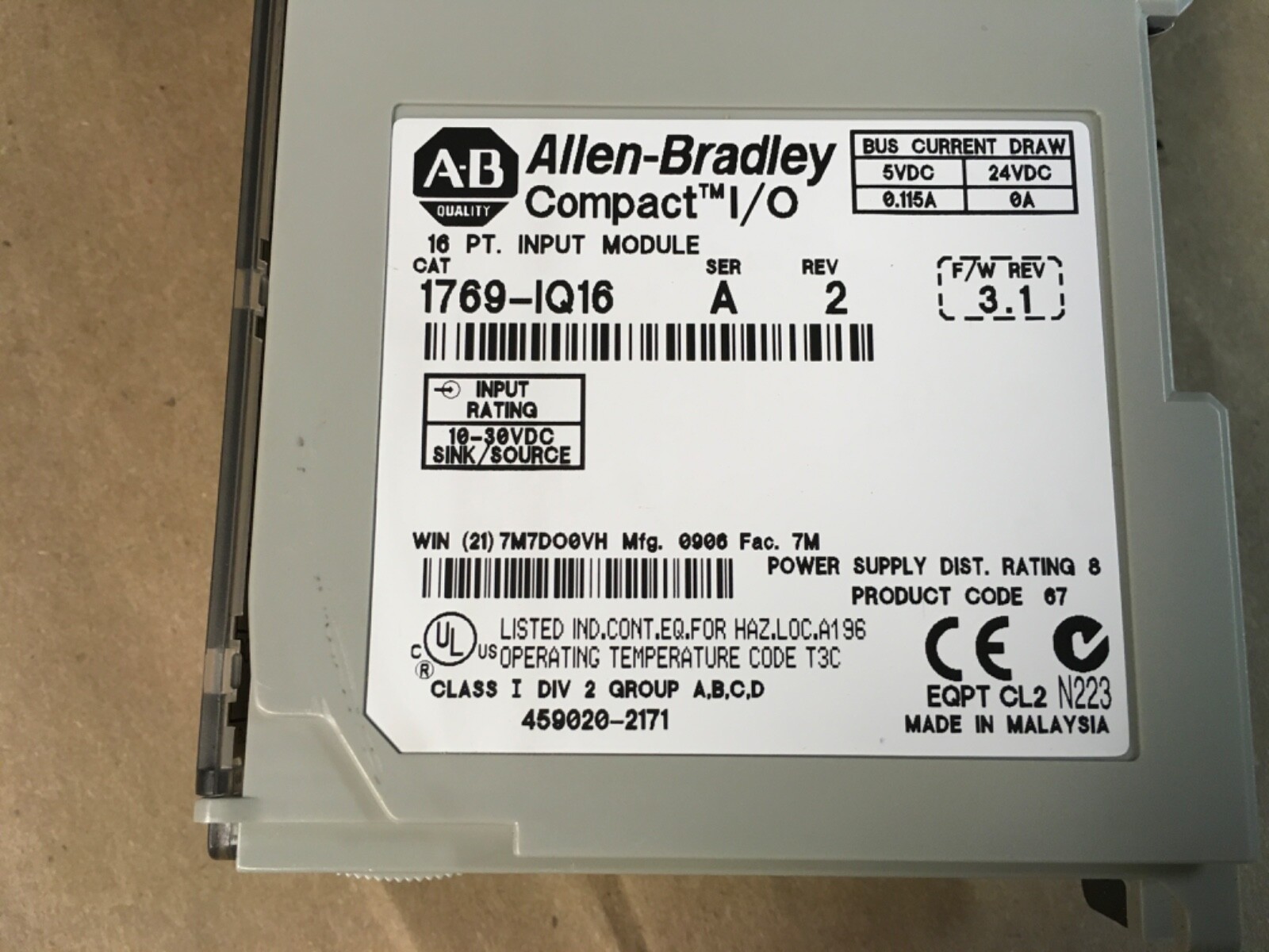 Allen-Bradley 1769-IQ16 SER A REV 2 Compact I/O Input Module KB