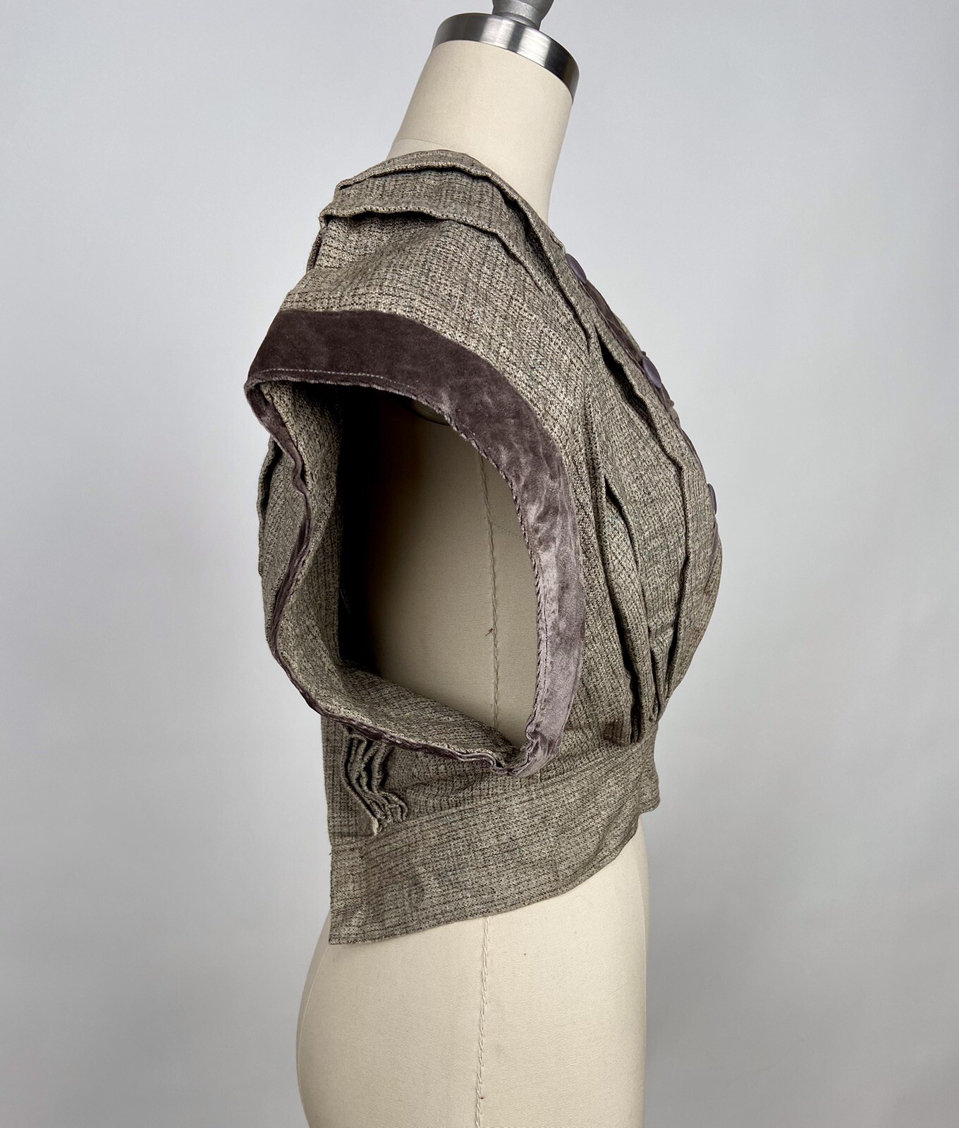 Antique Victorian Gray Bodice Pleated and Felt Details with Hook Closures AS IS
