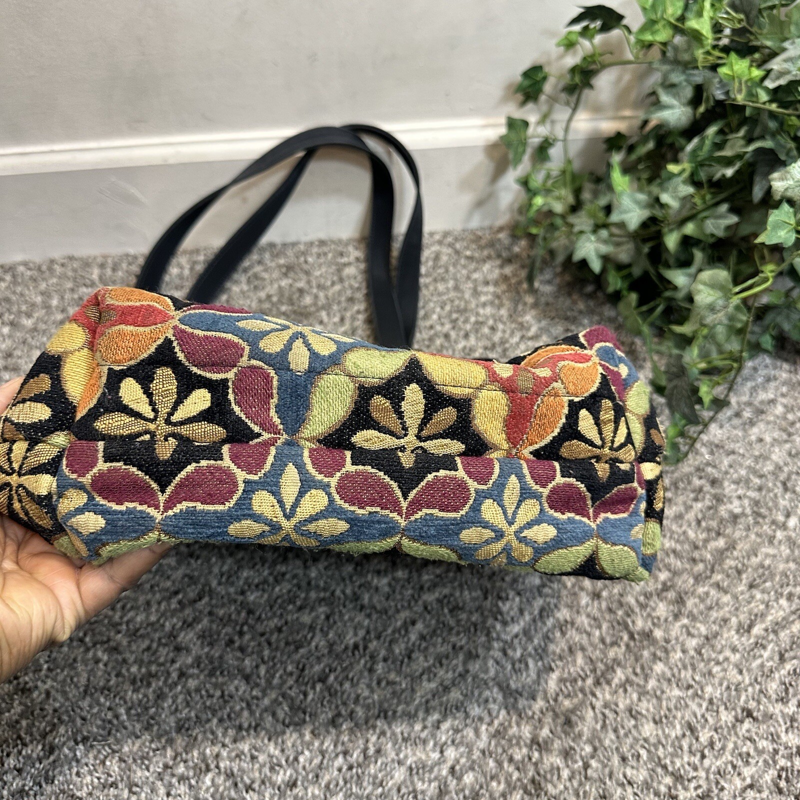 Danny K Beverly Hills Floral Tapestry Shoulder Bag Tote Black Red Orange