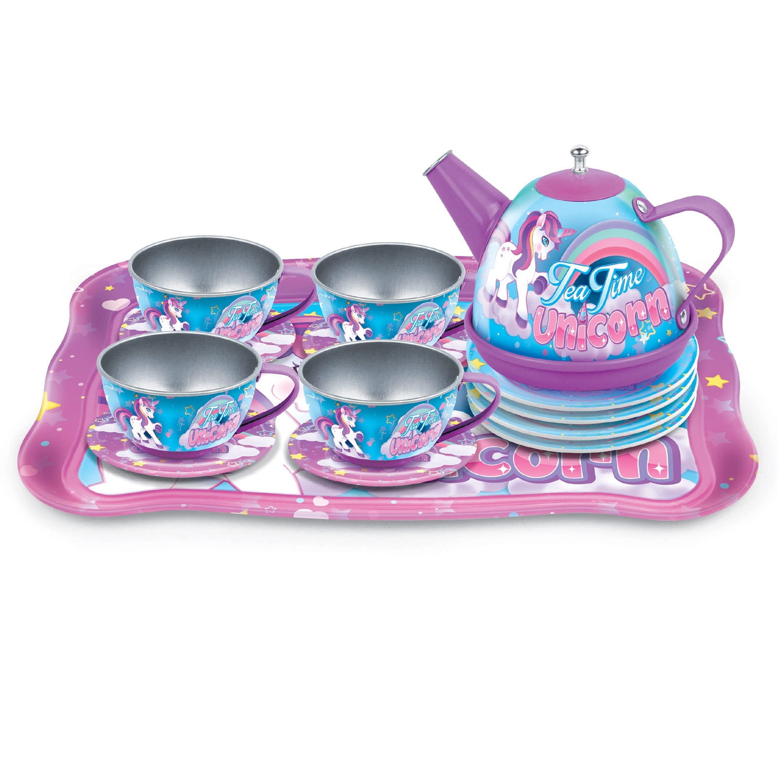Tea Party Set, 14-Piece Unicorn for Toddler Girls - Princess Pretend Game Playse
