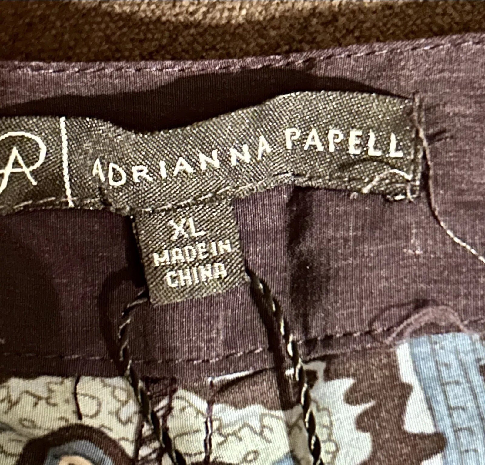 Adrianna Papell Womens Straight Leg Pants Blue Beige Floral Beaded Pull On