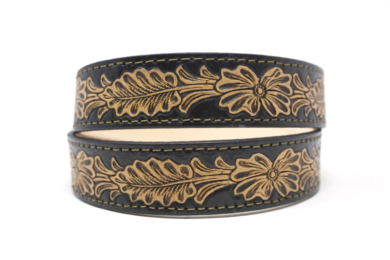 HandTooled Floral Belt, 1.5 Hand Painted Belt with Removable Western Buckle