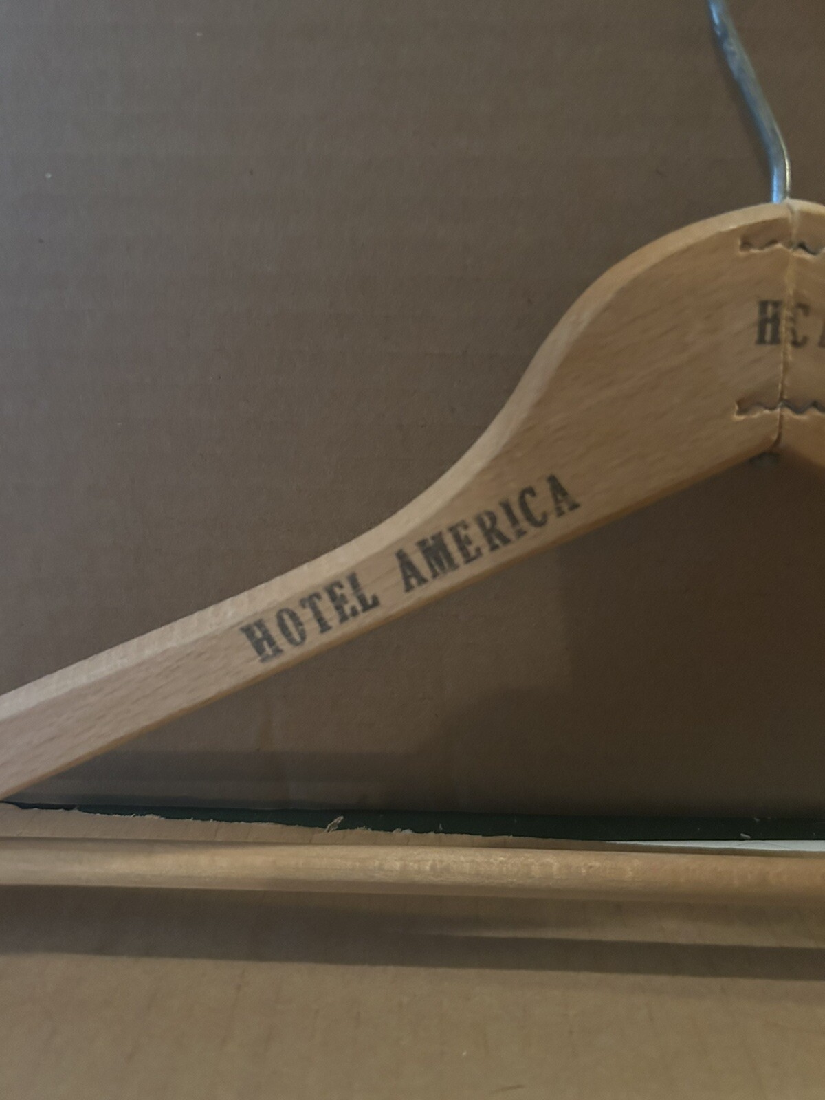 как выглядит Vintage Wooden Clothes Hanger "Hotel America " Houston Texas Advertising фото