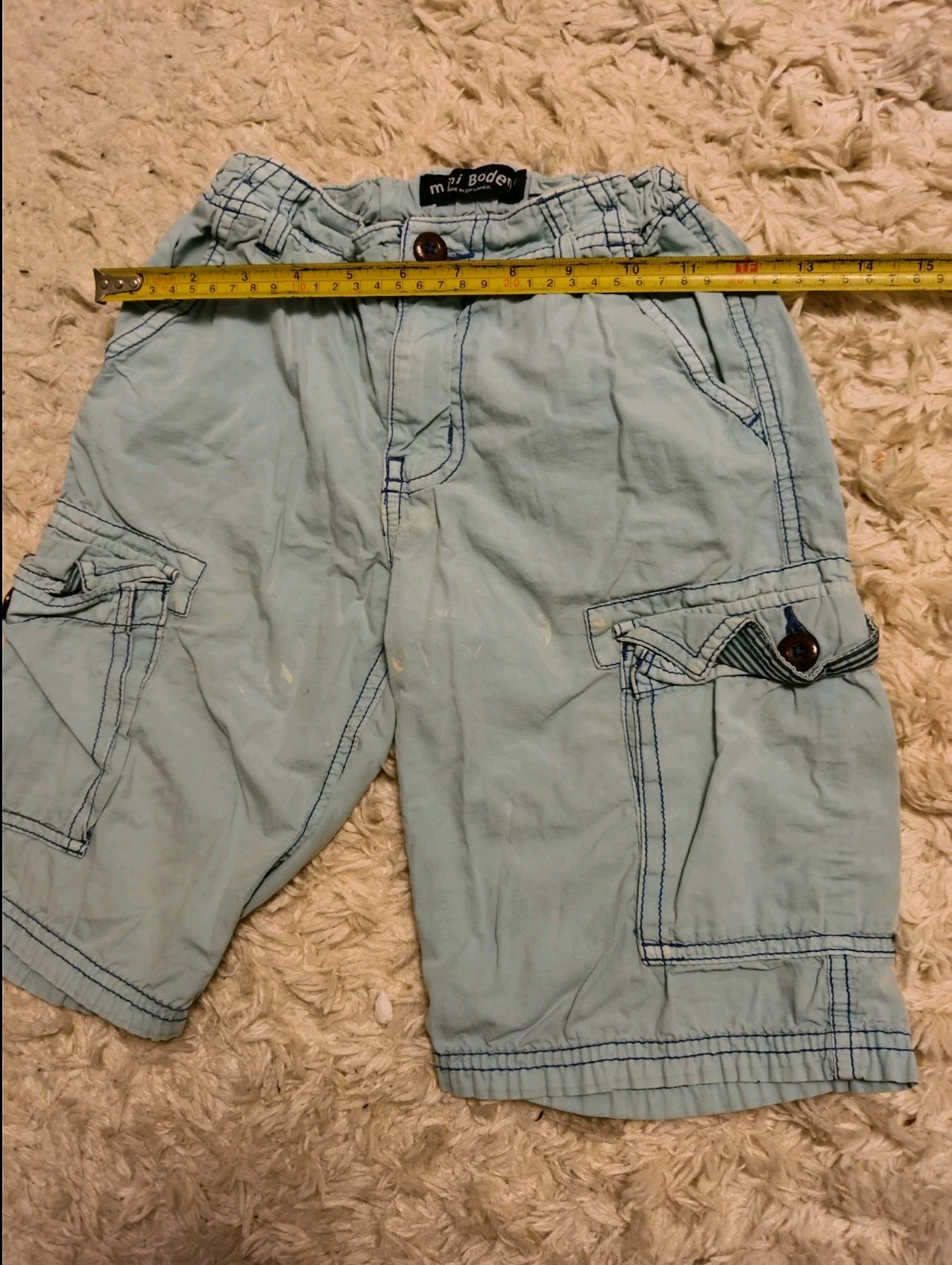Mini Boden Boys Light Turquoise Blue Twill Shorts Embroidered 100 Cotton