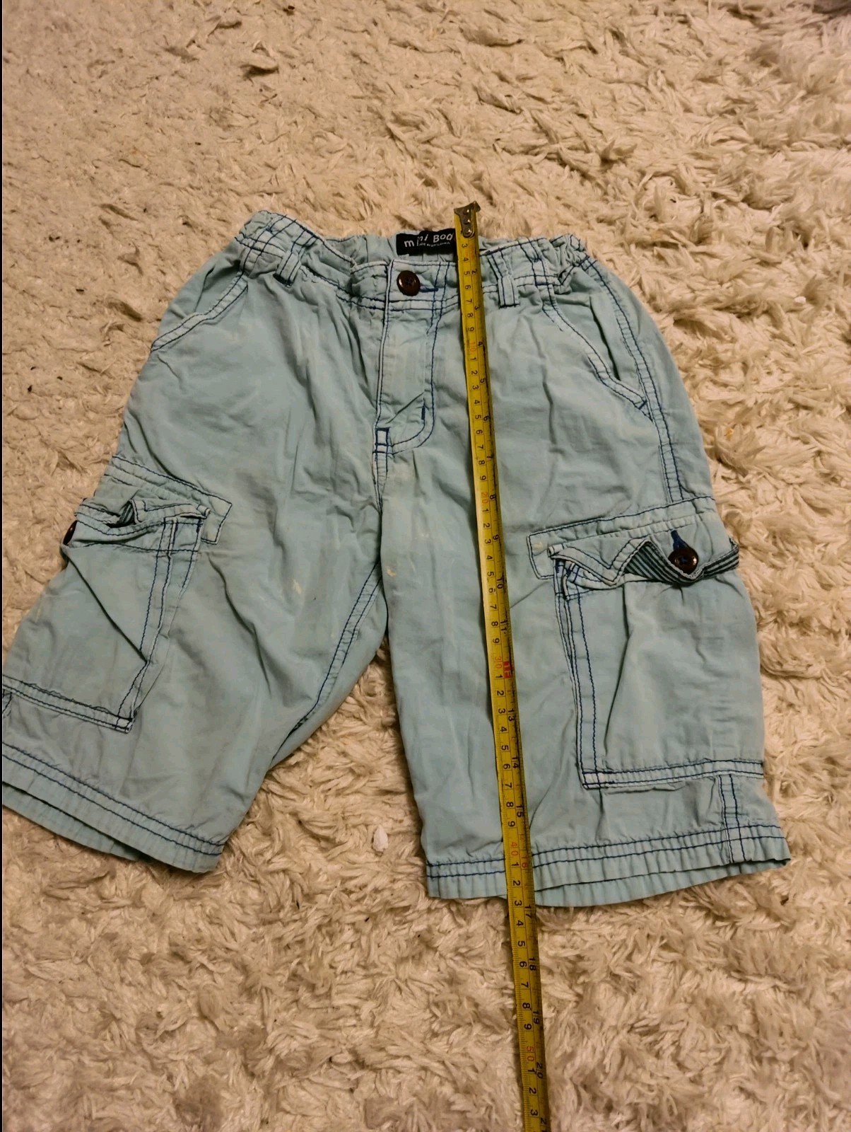 как выглядит Mini Boden Boys Light Turquoise Blue Twill Shorts Embroidered 100 Cotton фото