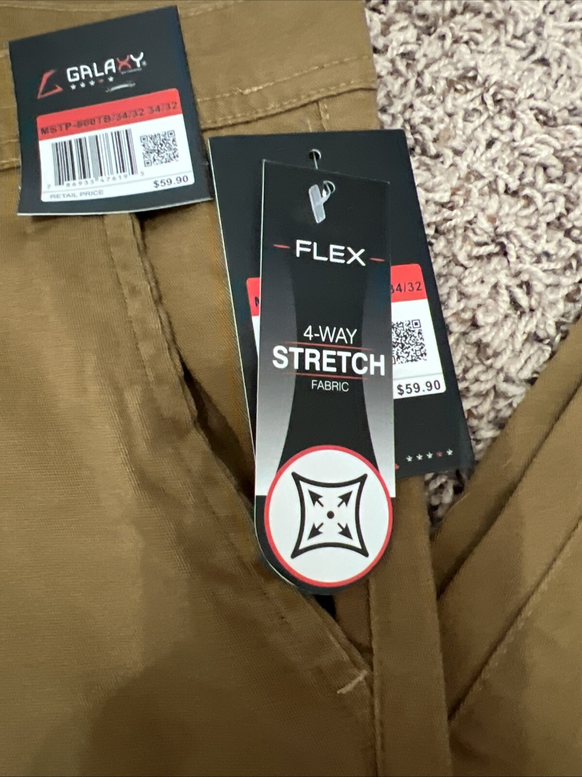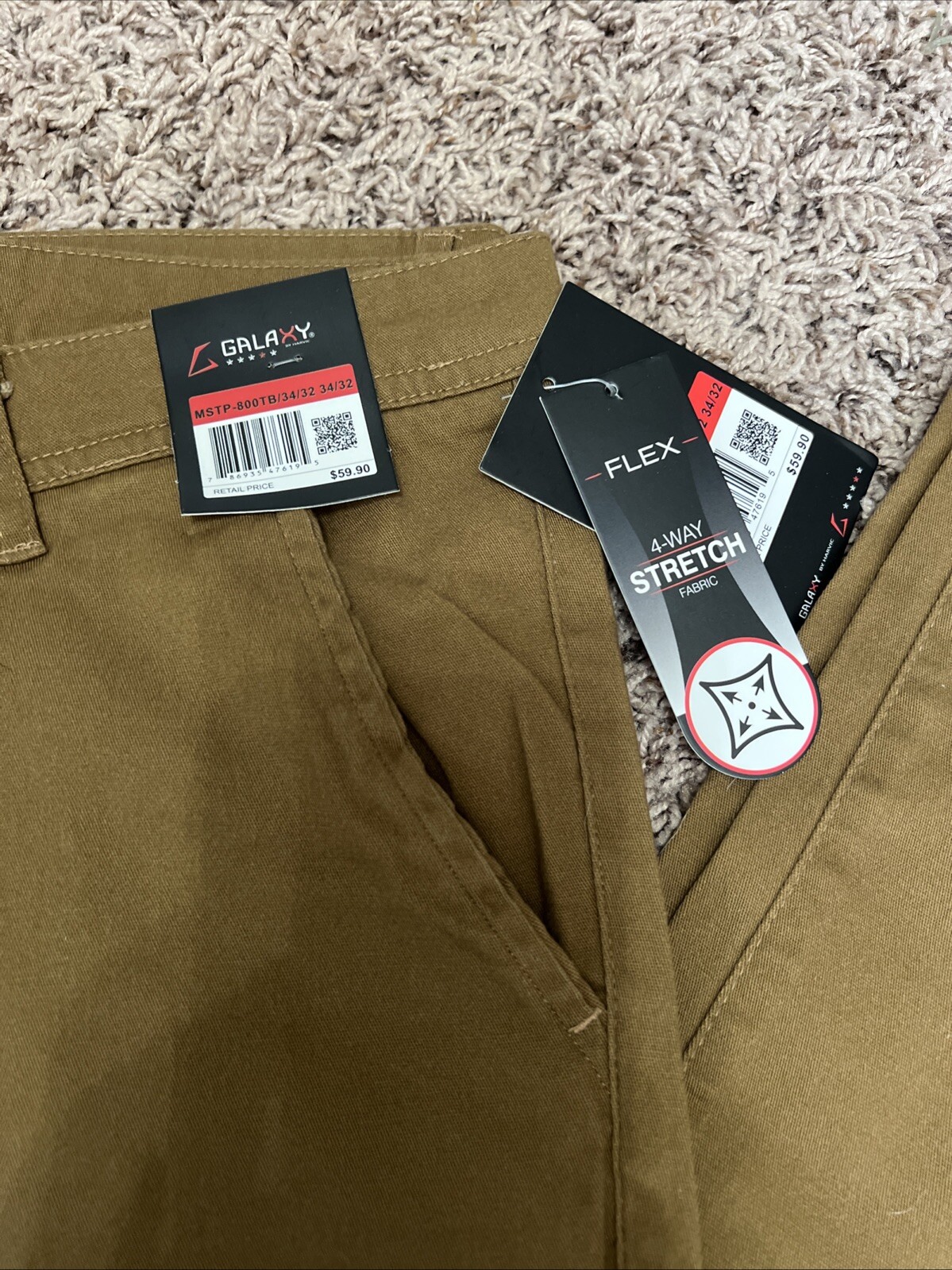 Galaxy By Harvic Men s Flex 4-Way Stretch Pant Slim Brown Size 34/32 NWT