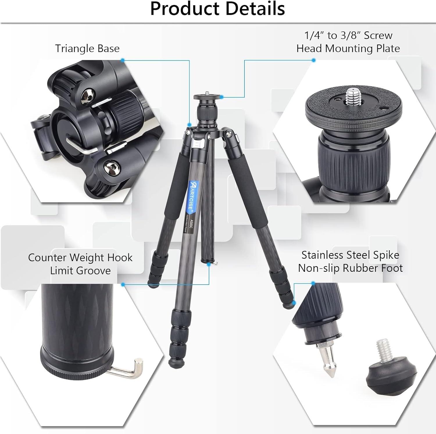 69 in Carbon Fiber Camera Tripod Monopod Compact Travel Tripod for SLR DSLR