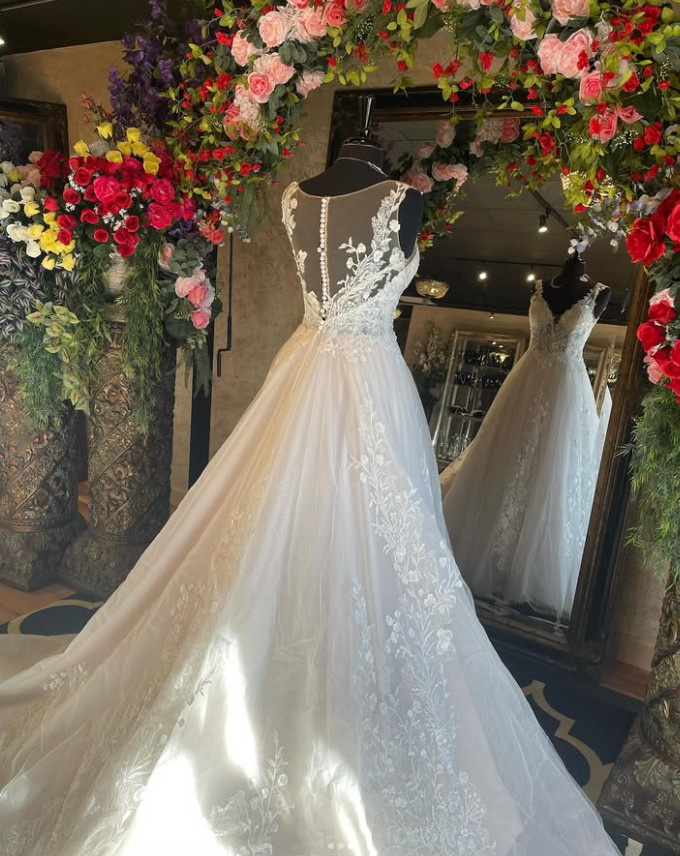 как выглядит Bohemian V Neck Lace Wedding Dresses A Line Appliques Court Train Bridal Gowns фото