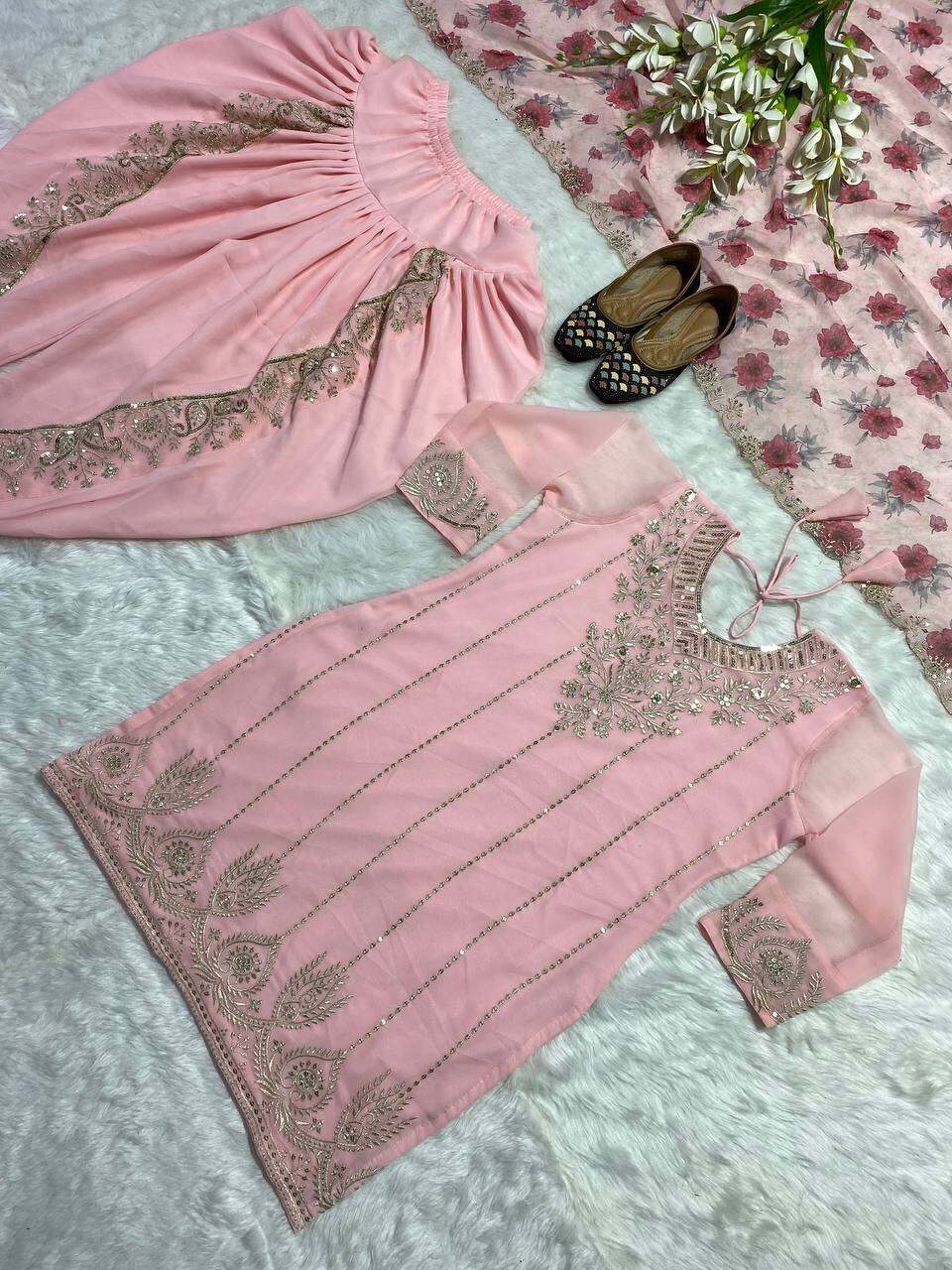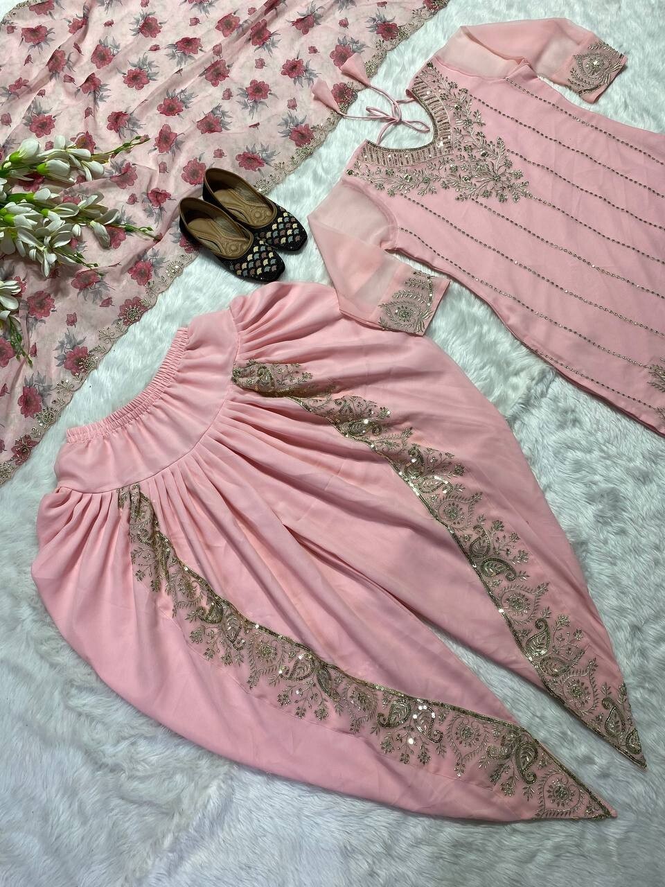 как выглядит PUNJABI STYLE HEAVY FAUX GEORGETTE TOP DHOTI WITH PRINTED DUPATTA FOR PARTY фото