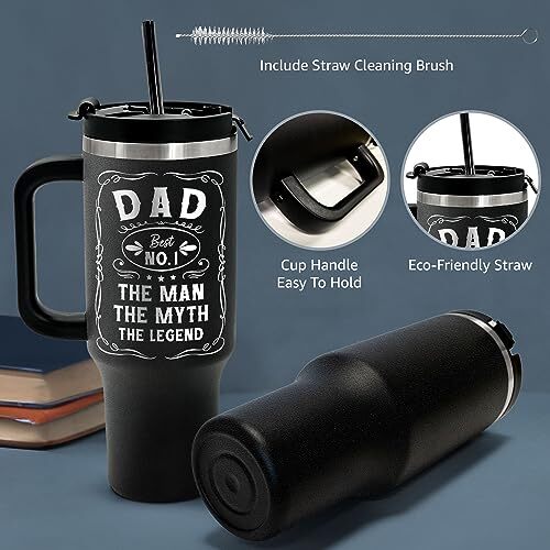 Engraved 40 oz Tumbler With Handle Straw Lid - Christmas Gifts For Dad Dad - 3