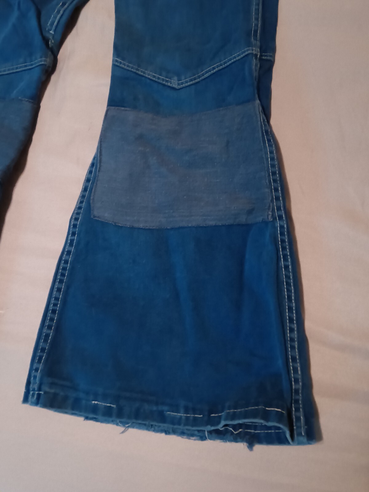 как выглядит Vintage 70s Bell Bottom Jeans, Grunge Kids Jean Pants, Patches And Scuffing фото