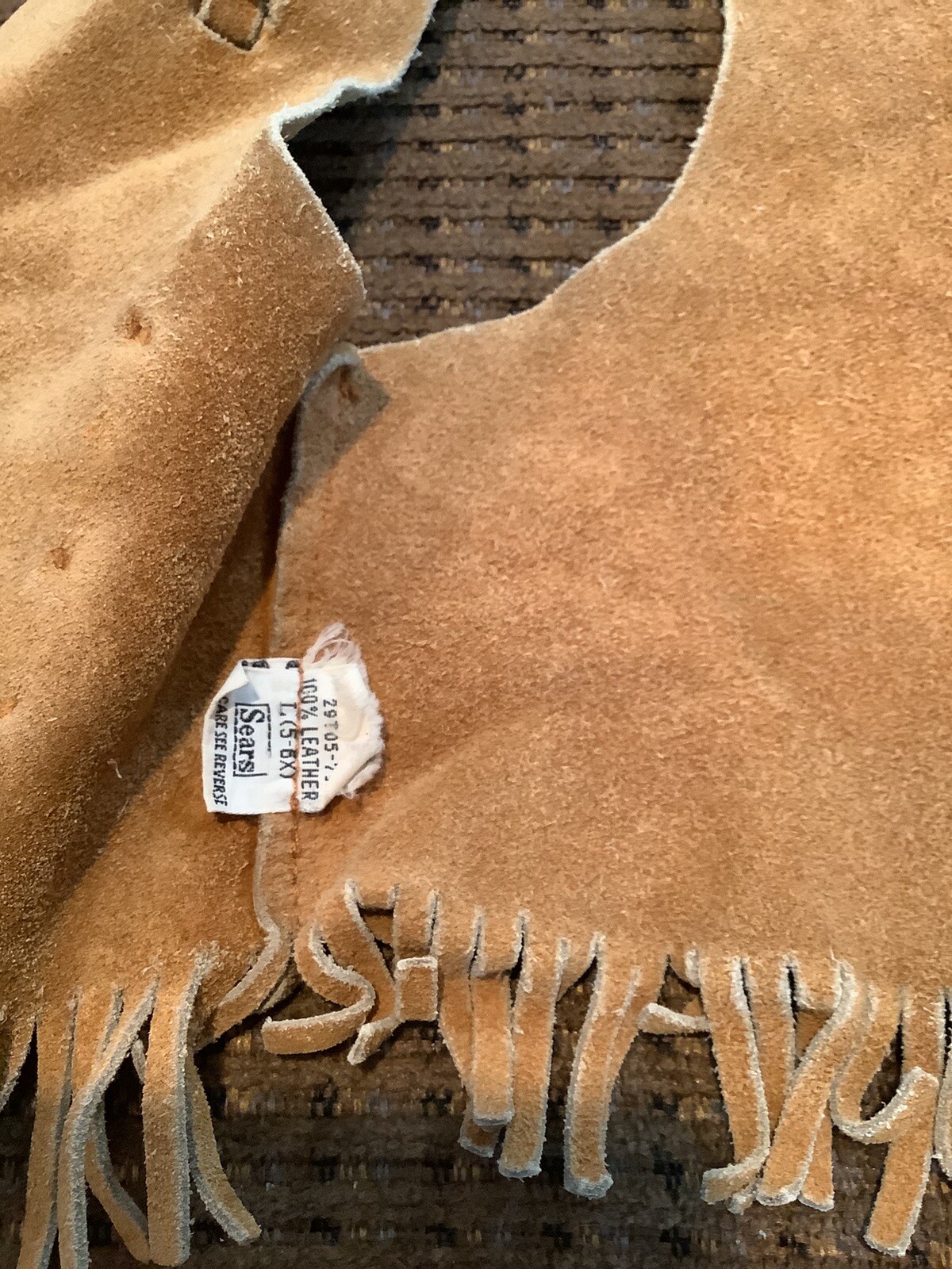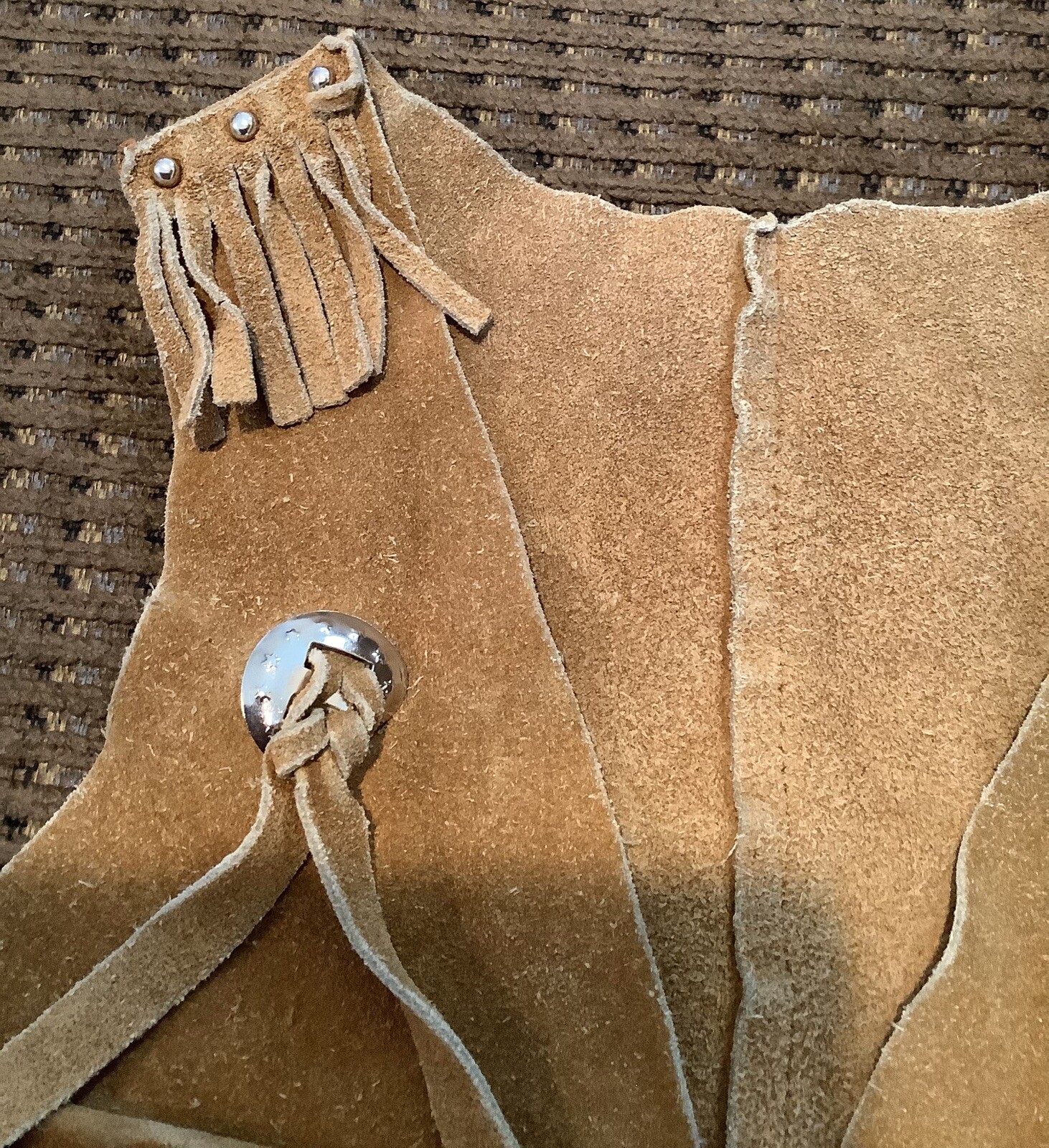 как выглядит Childs Leather Western Cowboy VTG Vest Studs Fringe 158ia фото