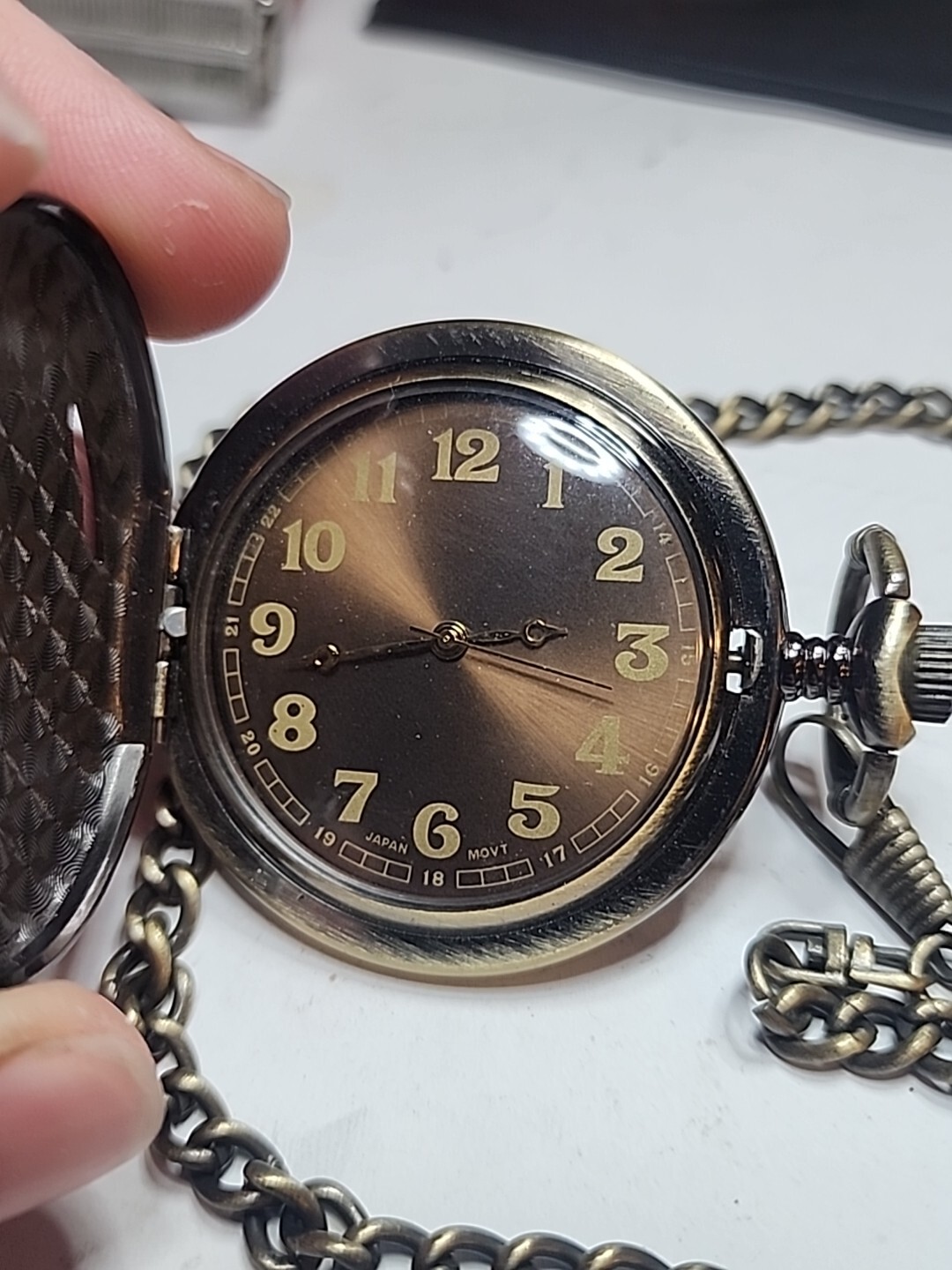 как выглядит Quartz Open Face Hunter Pocket Watch Locomotive Train Chain New Battery works фото