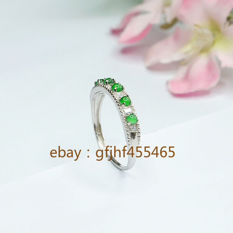 Certificate Natural A grade jadeite Egg Noodle Ring S925 silver set adjustable