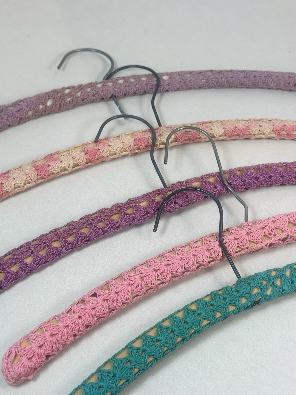 Vintage Lot Of 5 Hand Crocheted Yarn Covered Clothing Hangers