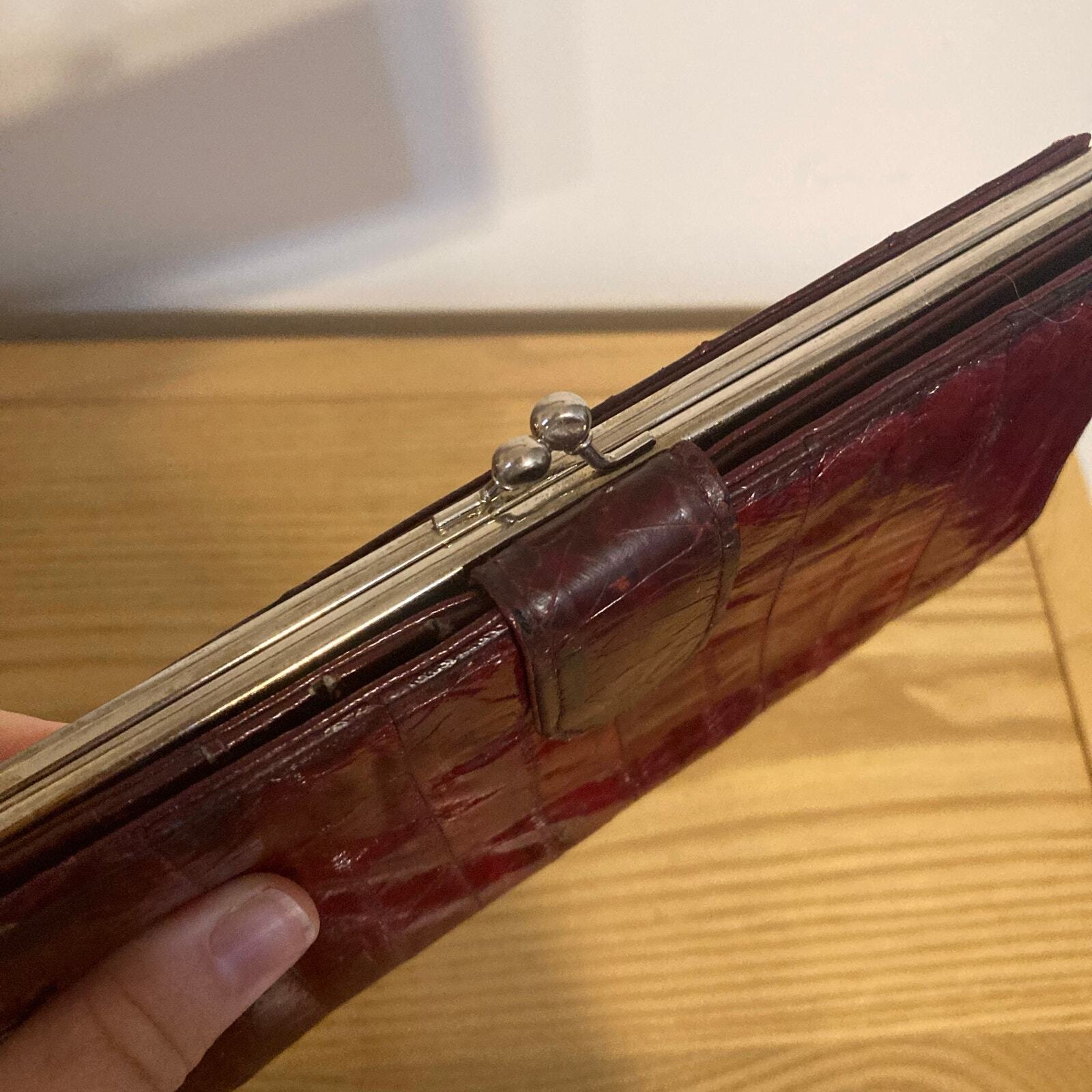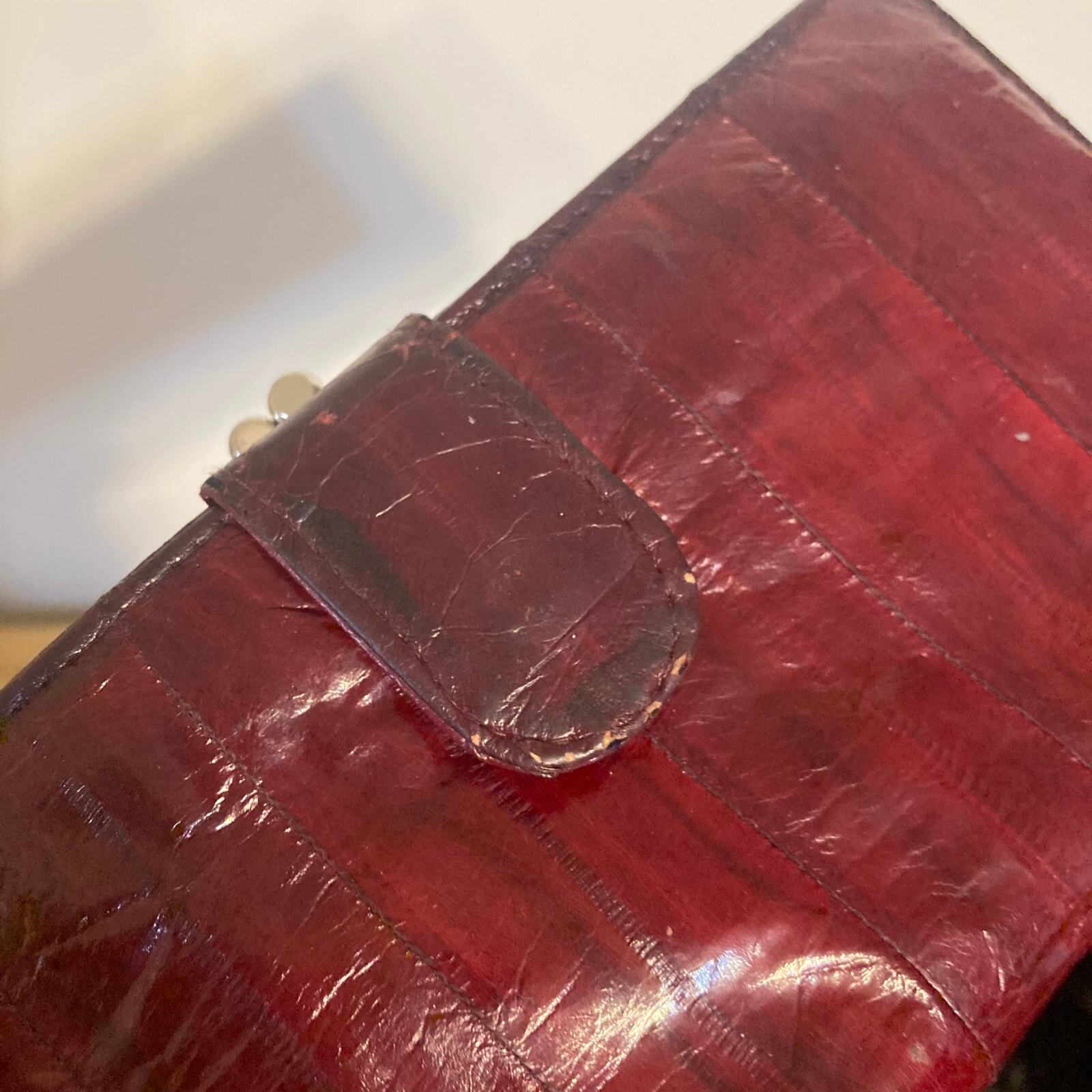 Vintage Genuine Eel Skin Trifold Wallet Checkbook Burgundy Wine