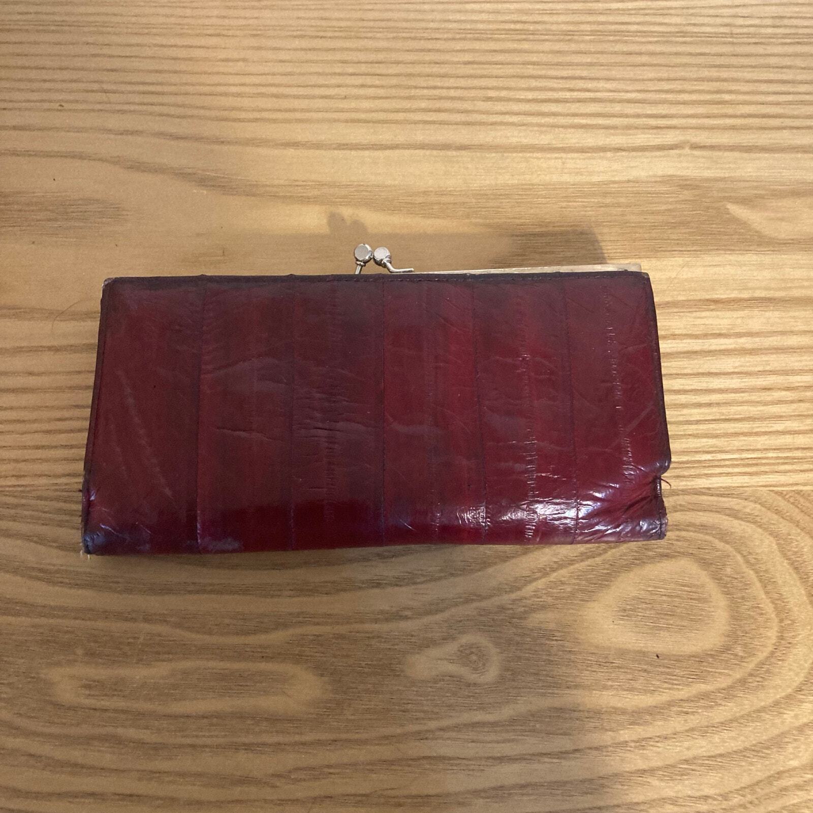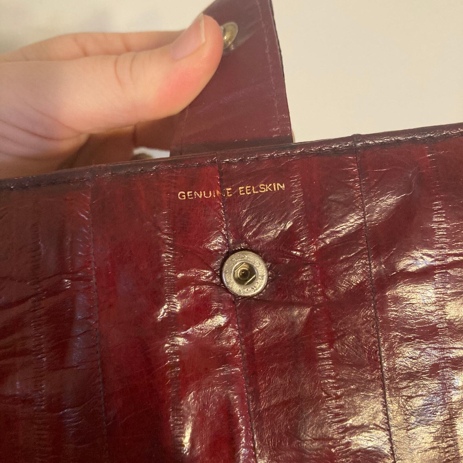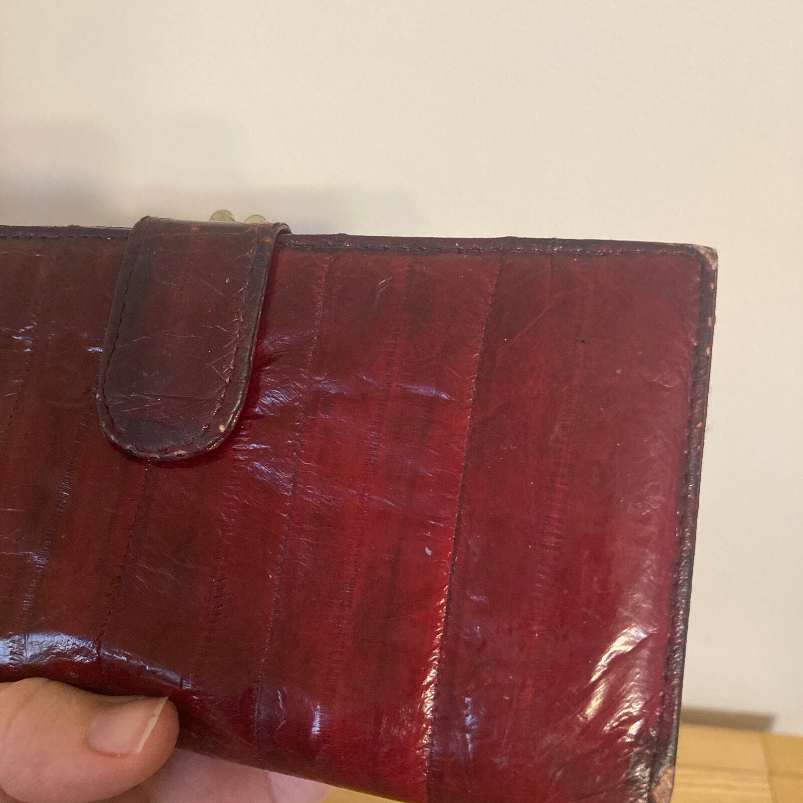 как выглядит Vintage Genuine Eel Skin Trifold Wallet Checkbook Burgundy Wine фото