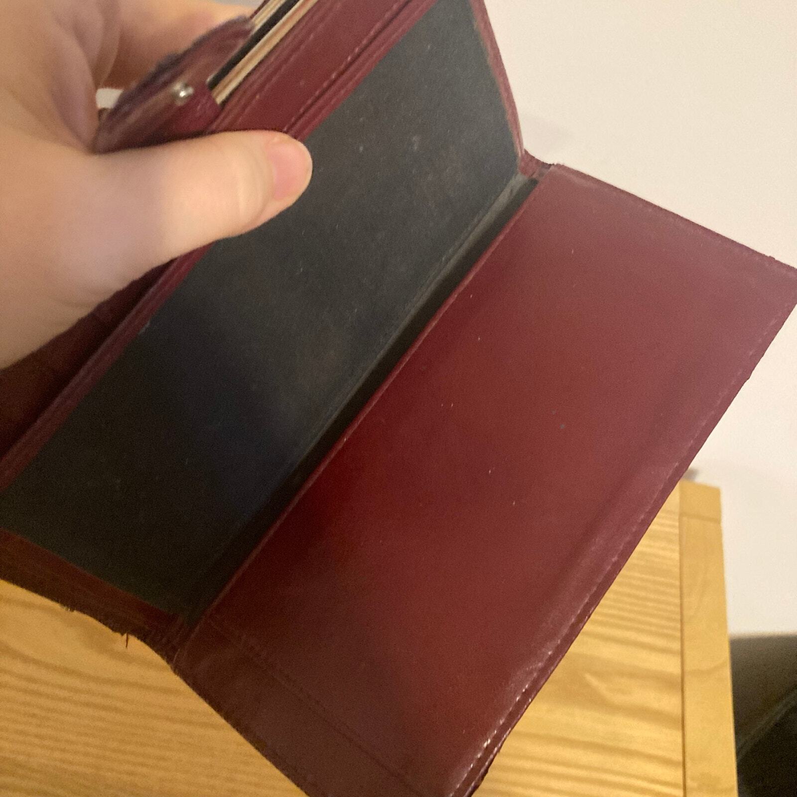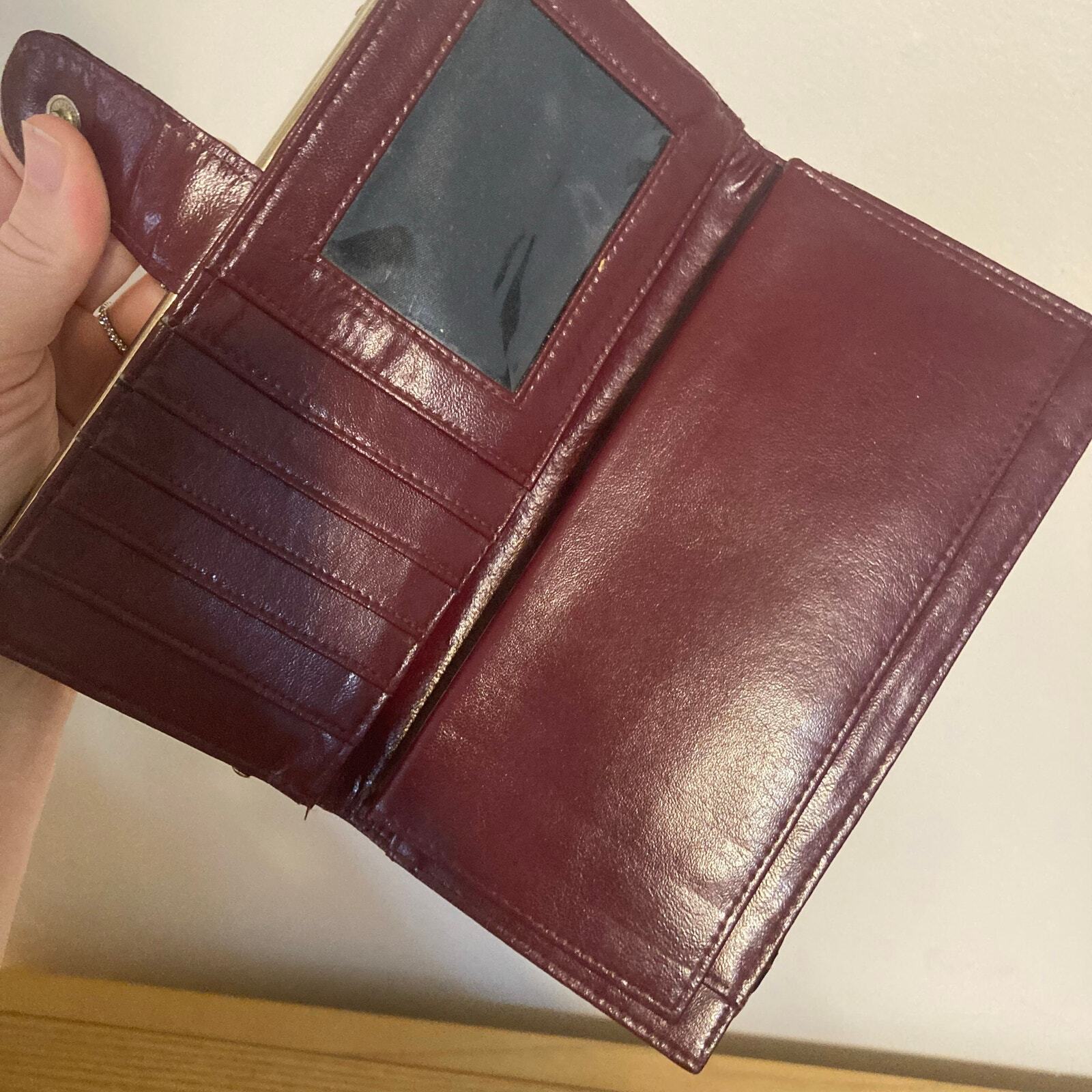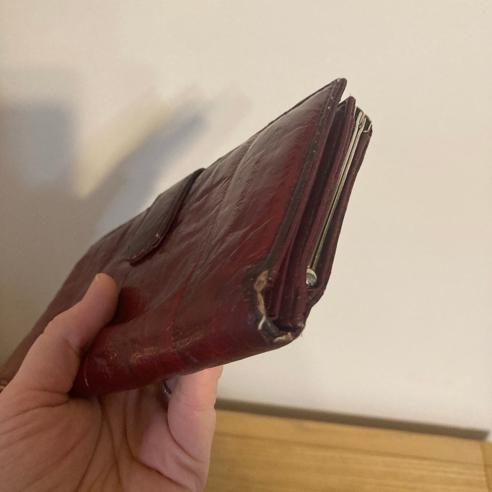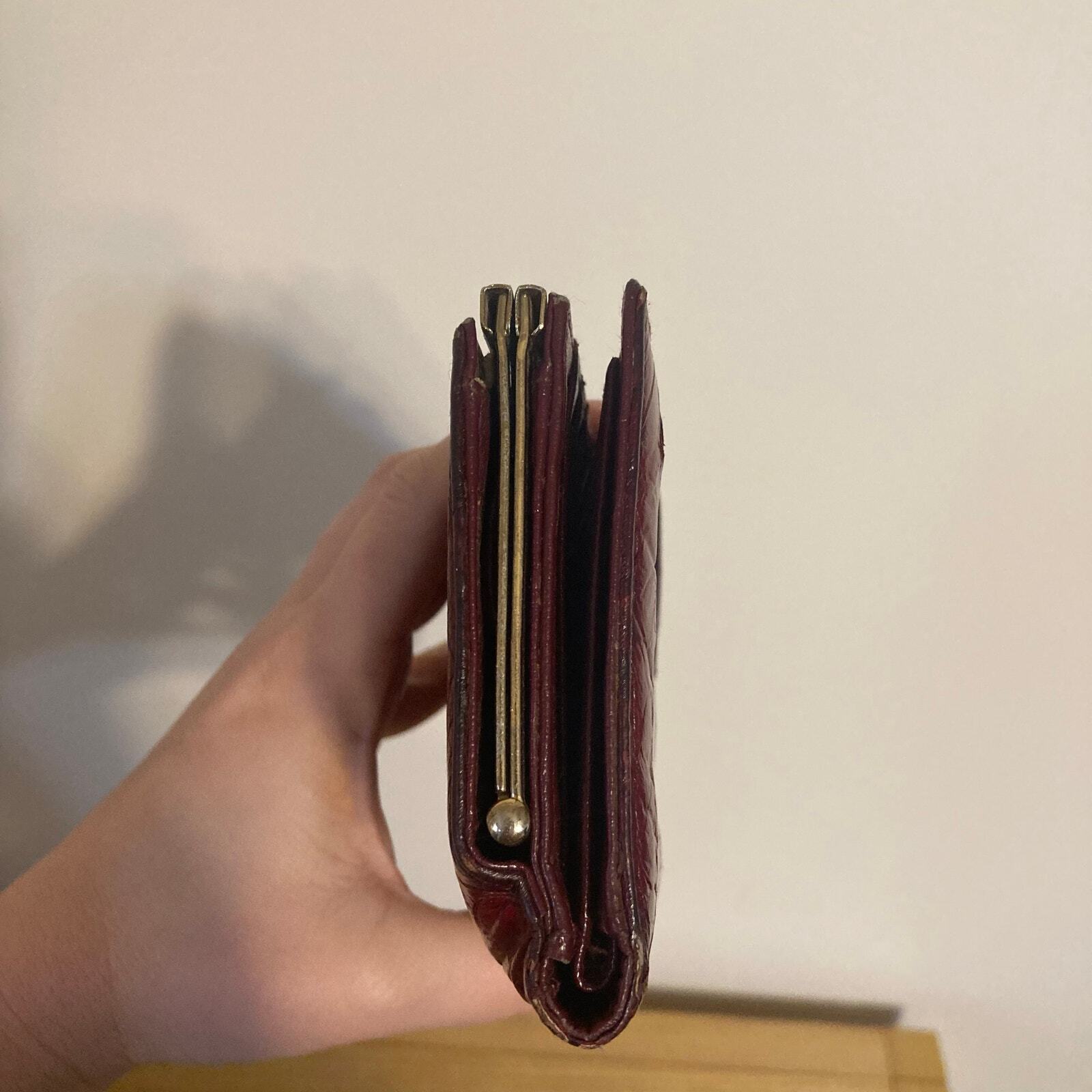 как выглядит Vintage Genuine Eel Skin Trifold Wallet Checkbook Burgundy Wine фото