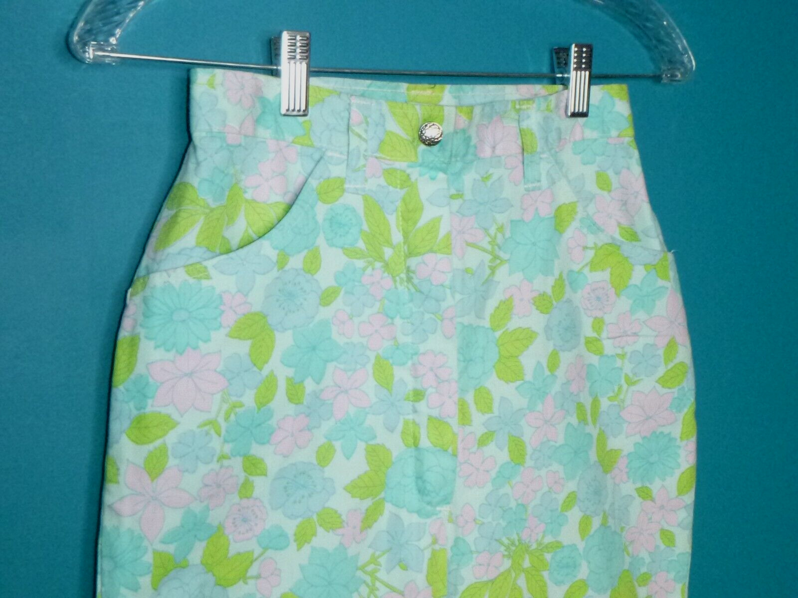 NOS Vtg 60s 70s Whistlers GROOVY Print Cotton Flare Pants Pastel Floral W 25