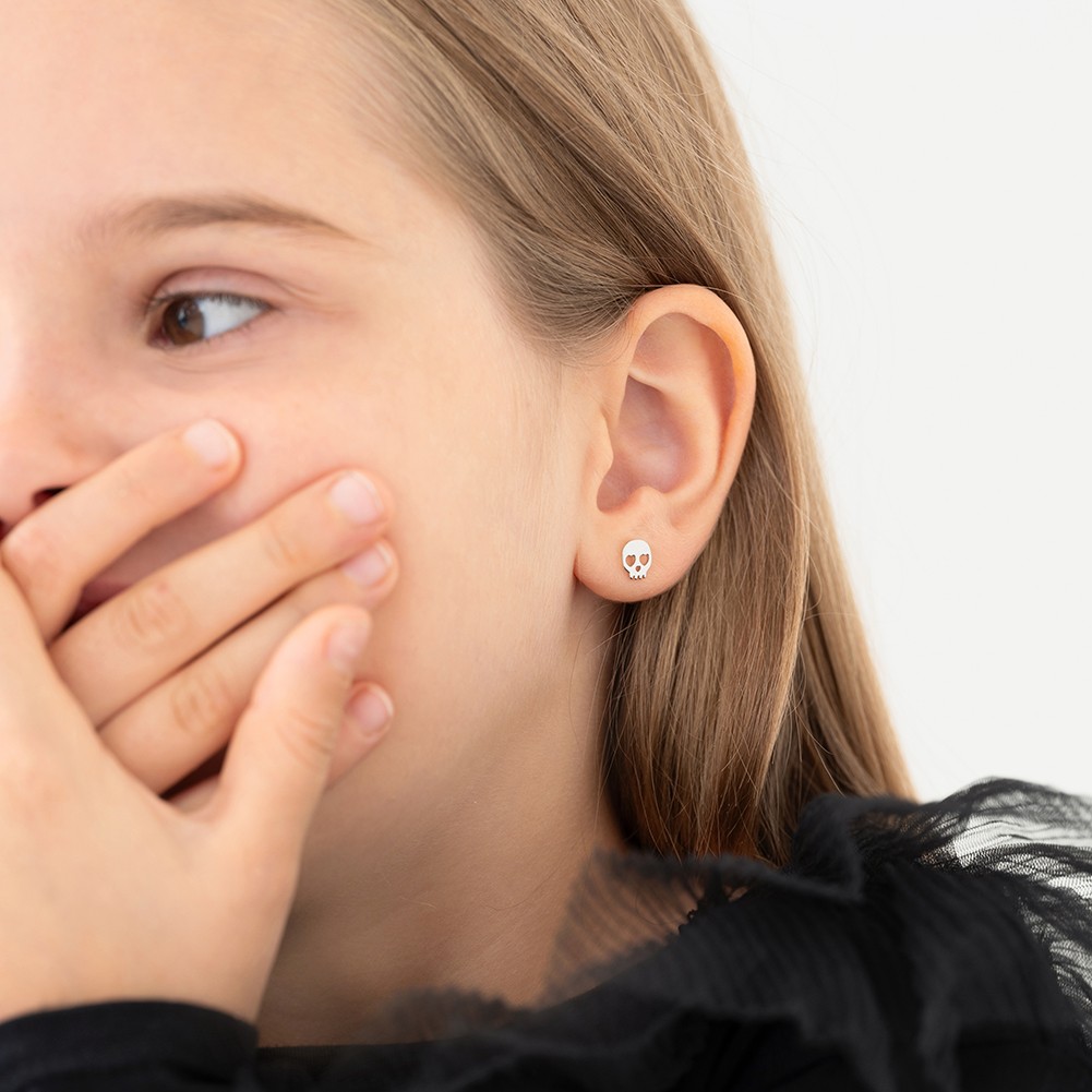 как выглядит Heart-Eyed Bones Kids / Childrens / Girls Earrings Screw Back - Sterling Silver фото