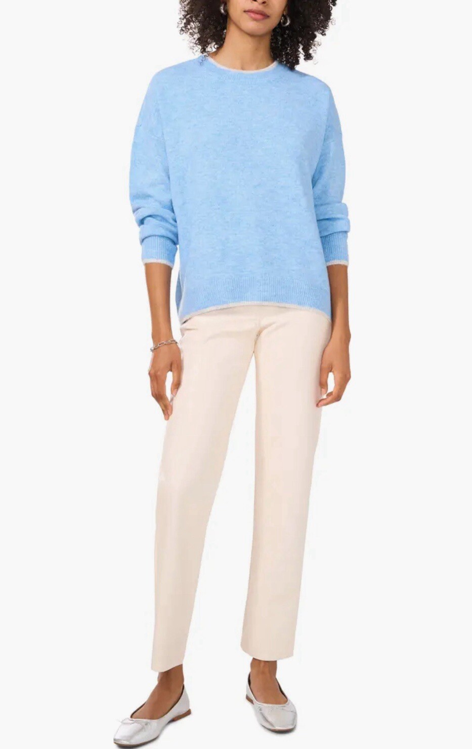 как выглядит Size XXL Vince Camuto Women s Tipped Crewneck Sweater In Blue Heather New фото