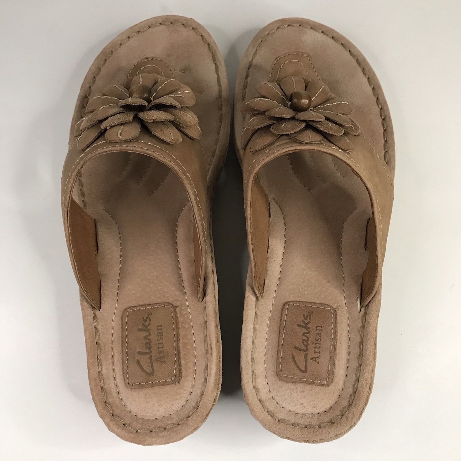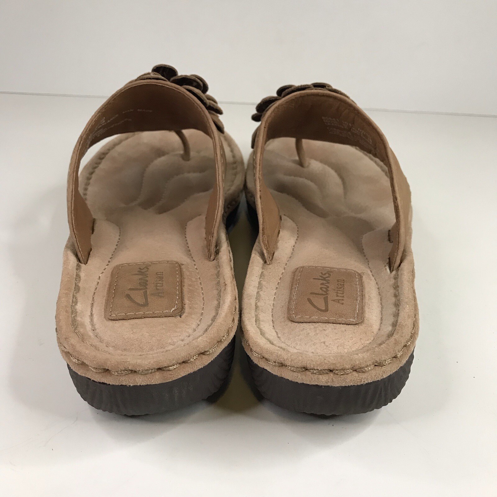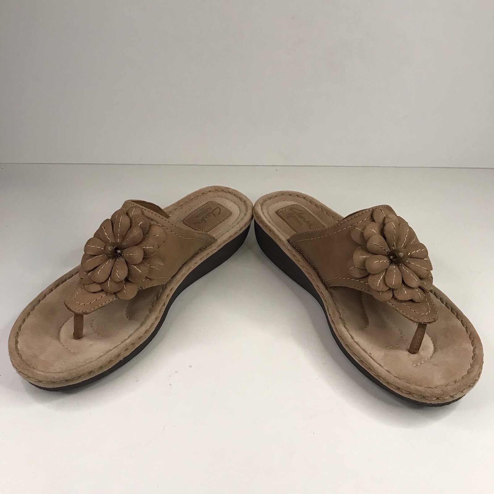 Clarks Laurieann Gema Sandals Floral Thong Tan Beige T-Strap Glides Women 10