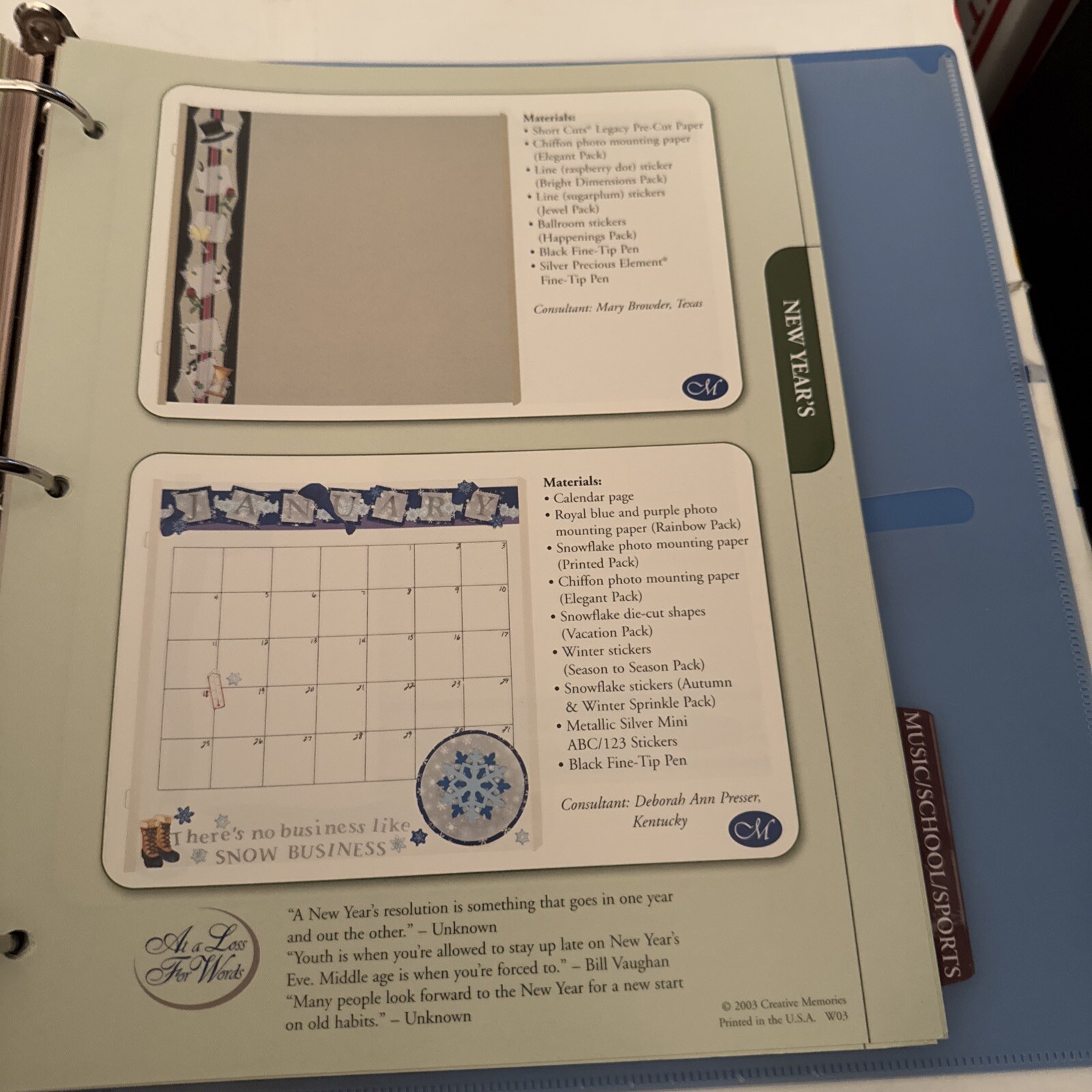 Creative Memories CM BLUE PAGE PATTERNS ORGANIZER BINDER FILLED OVER 200 PAGES