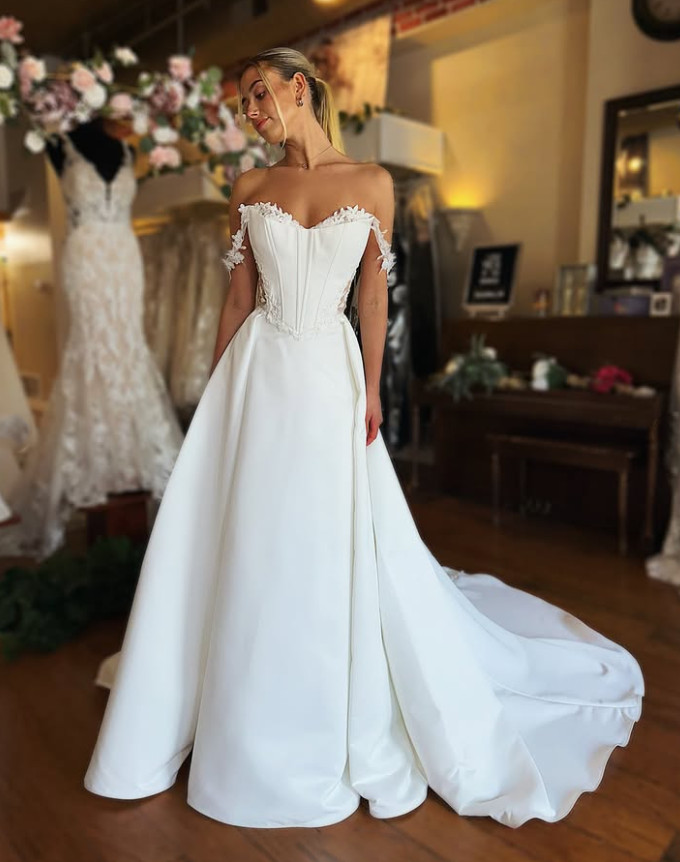 как выглядит Bohemian Long Sleeves Wedding Dresses Off the Shoulder Satin Bridal Gowns фото